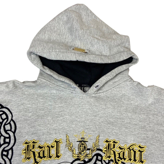 Vintage Y2K Grey Karl Kani Gold Detailing Embroidered Velour Graphic Hoodie XL