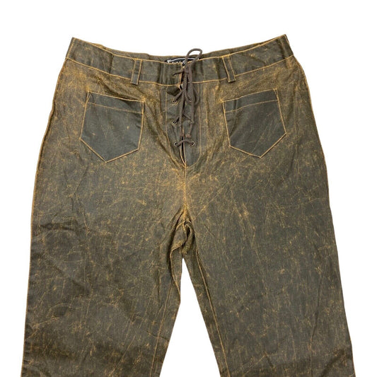 Vintage Y2K Brown Distressed Leather Look Flared Lace Up Trousers 8 10 S