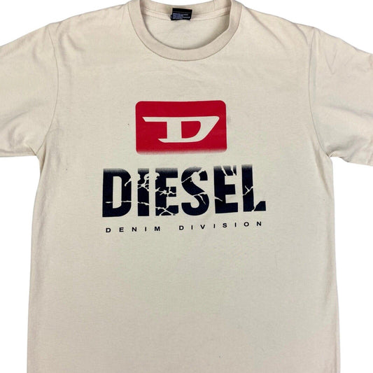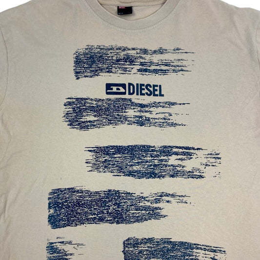 Vintage Y2K Cream Blue Diesel Graphic Print T-shirt L