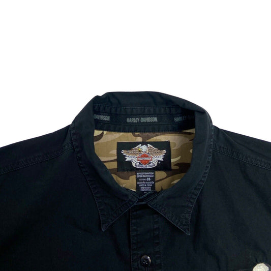 Vintage Y2K Black Harley Davidson Embroidered Skull Shirt XL
