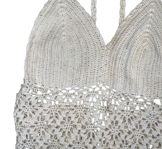 90s Y2K 'RIP CURL' OFF-WHITE FESTIVAL BOHO CROCHET SURF TIE-UP VEST TANK TOP S 8