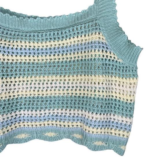 VTG 90s y2k 'GU' BLUE WHITE STRIPED CROCHET FESTIVAL BOHO TANK VEST TOP XS 4