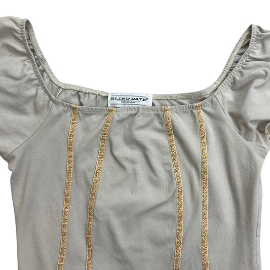 Vintage Y2K Grey Floral Corset Style Top 6 8 XS S