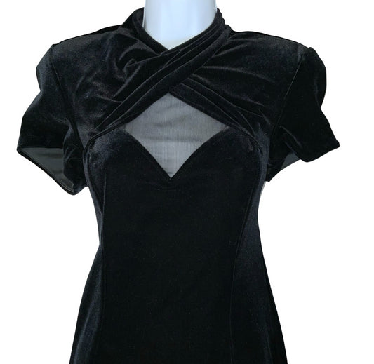Vtg Y2K 'S.L.Fashions' Black Velvet Dark Romantic Prom Elegant Maxi Dress UK 10