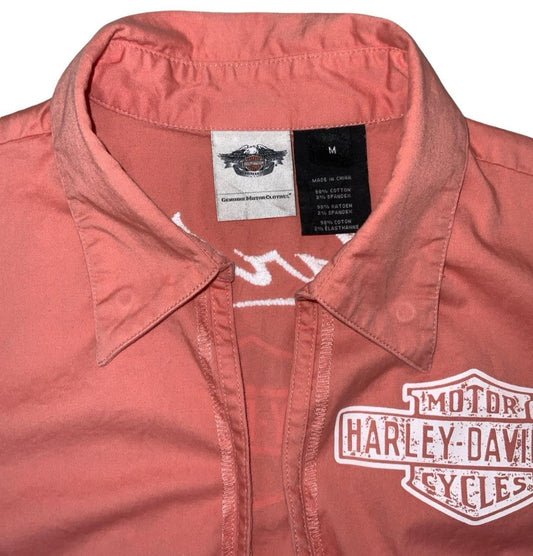 VTG Y2K HARLEY DAVIDSON GENUINE MOTORS ORANGE WHITE ZIP-UP SHIRT M