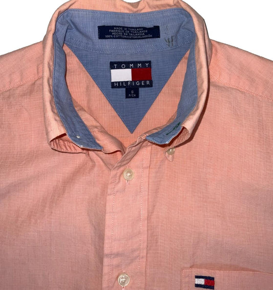 VTG Y2K TOMMY HILFIGER PINK SHORT SLEEVED BUTTON DOWN SHIRT MEDIUM