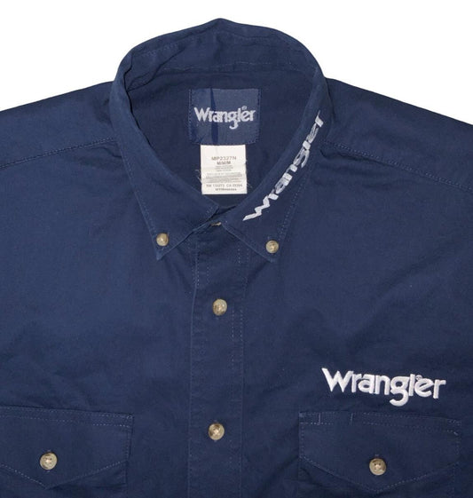 VTG 90S Y2K WRANGLER BLUE RETRO WESTERN EMBROIDERED LOGO SHIRT MEDIUM