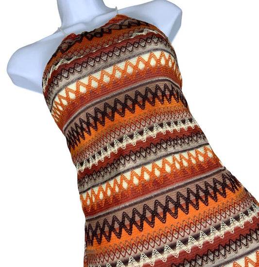 90s y2k 'EMERY ROSE' ORANGE BROWN EMBROIDERED FESTIVAL BOHO MINI SUMMER DRESS XS