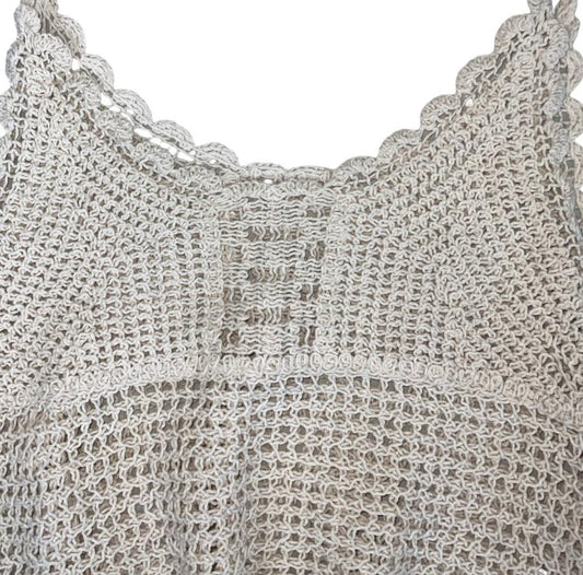 VTG 90s y2k 'EGOIST' OFF-WHITE CROCHET CROP BOHO FESTIVAL TANK VEST TOP S 8