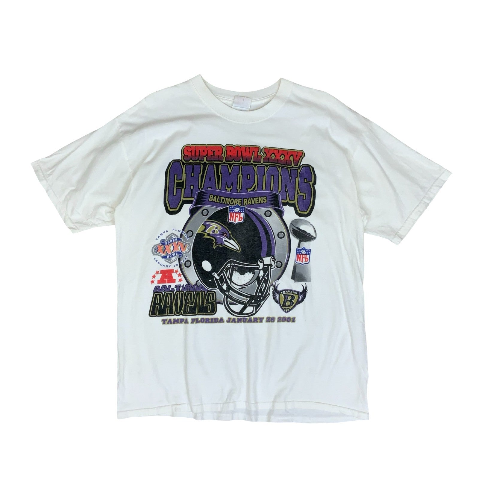 00s 'GILDAN' WHITE SUPERBOWL XXXV BALTIMORE RAVENS NFL CHAMPIONS T-SHIRT XL 2XL