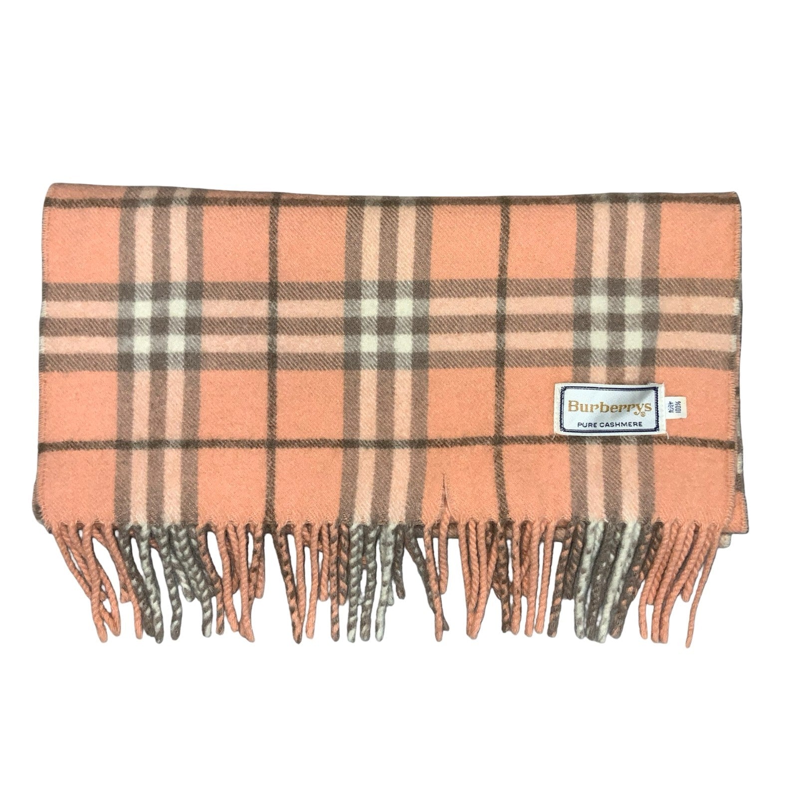 1970s TRUE VINTAGE 'Burberrys' Pink Grey 100% Pure Cashmere Soft Warm Scarf