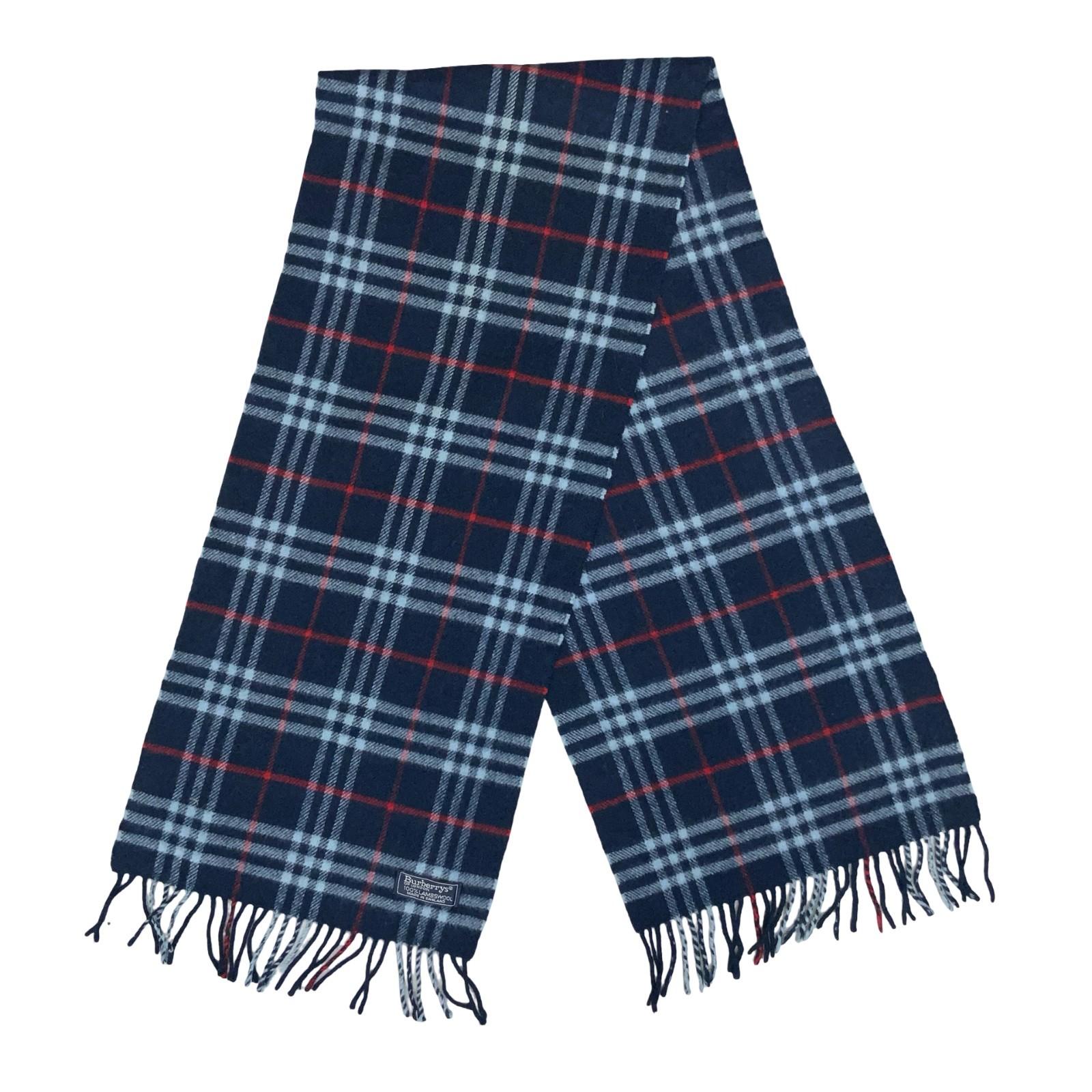 1980s 'Burberrys of London' Blue Red Nova Check 100% Lambswool Winter Warm Scarf