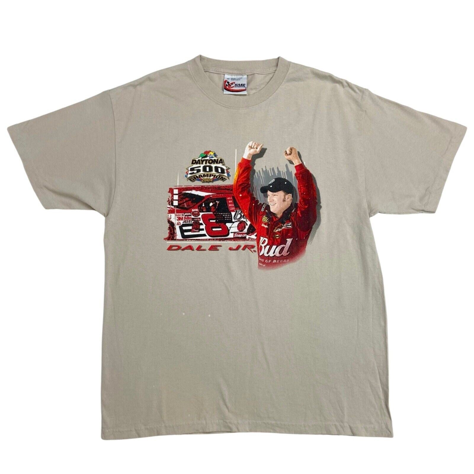 2004 Beige Dale Earnhardt Jr Daytona 500 Graphic Print Champion T-shirt M