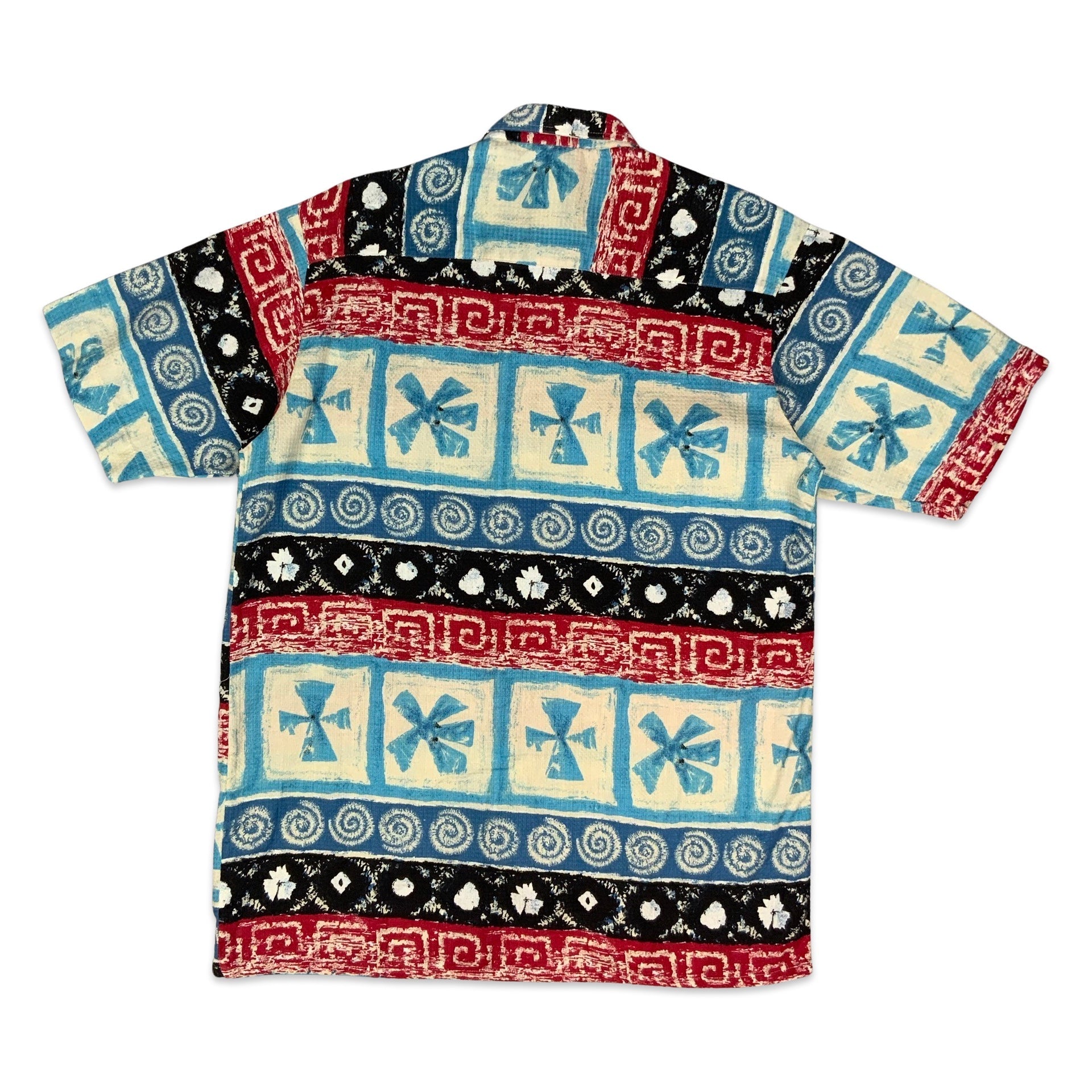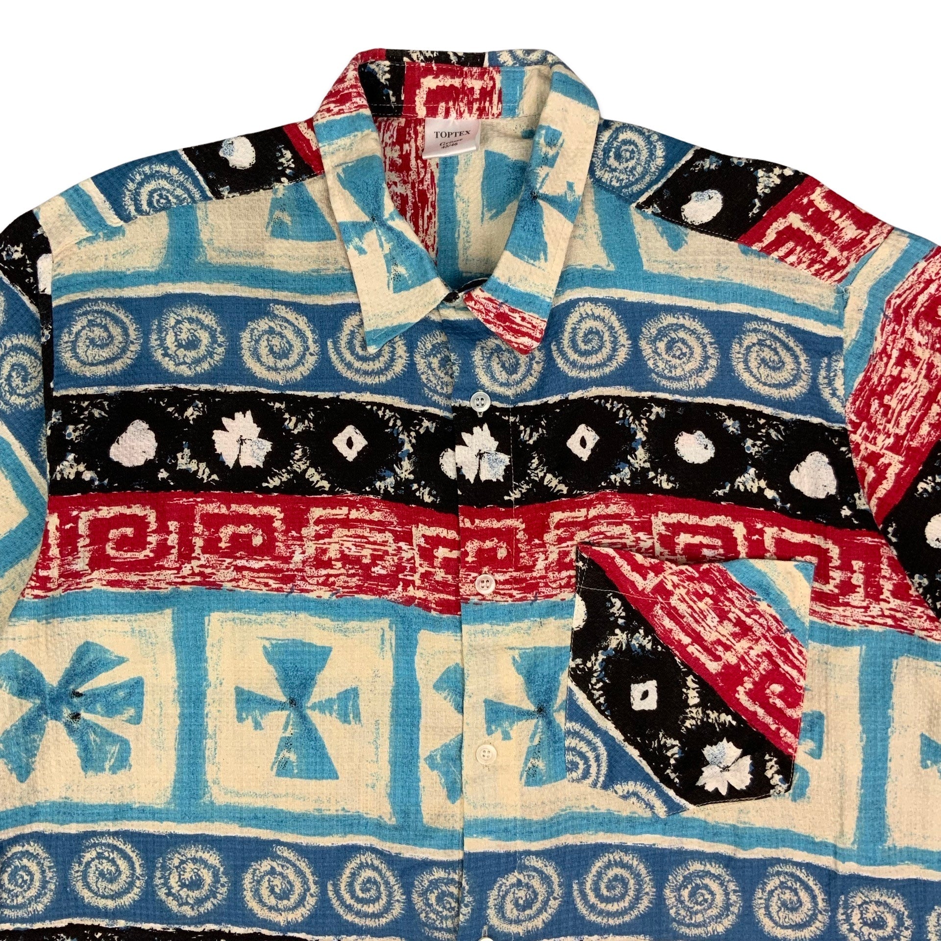 80s Blue Red & Black Abstract Print Shirt L