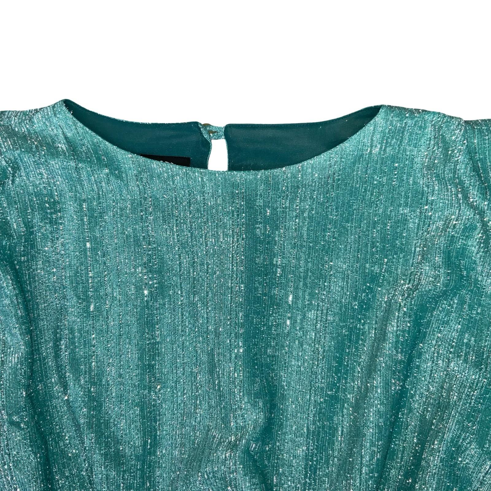 80s 'Golden Gate' Teal Green Glitter Peplum Belt Disco Party Blouse UK 8/10