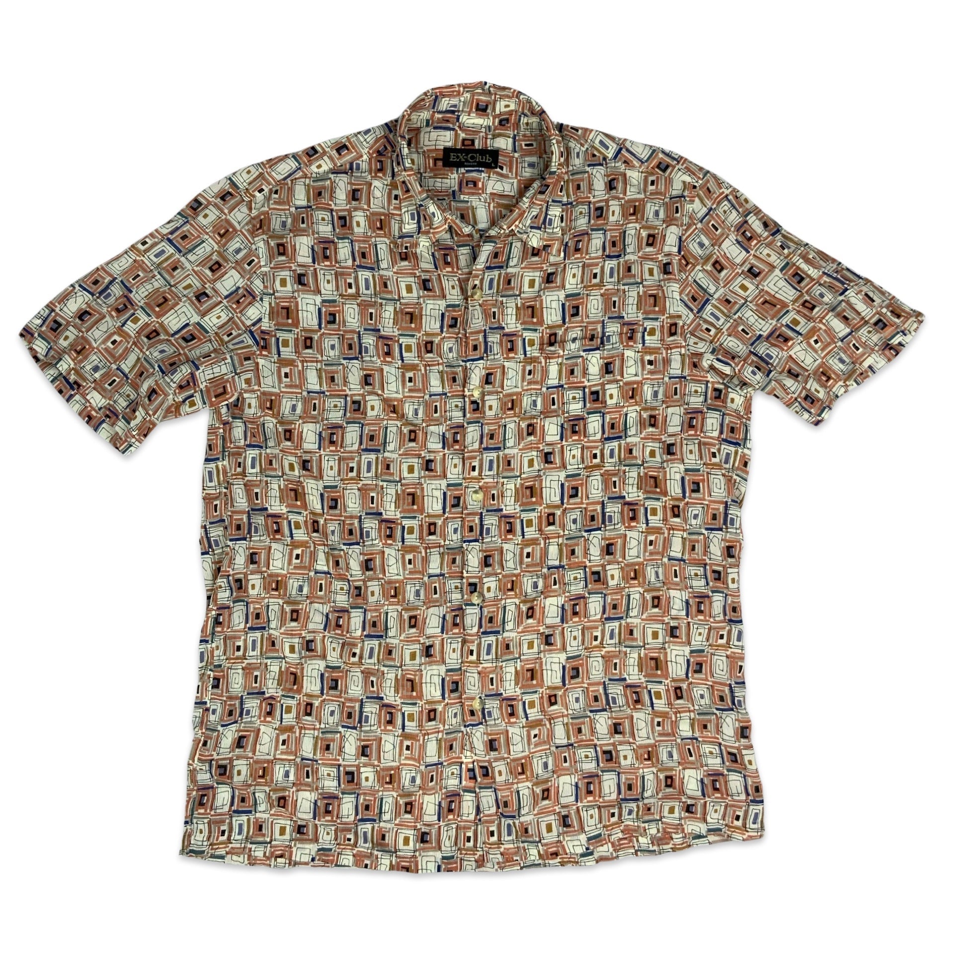 Vintage Orange & White Geometric Print Shirt M