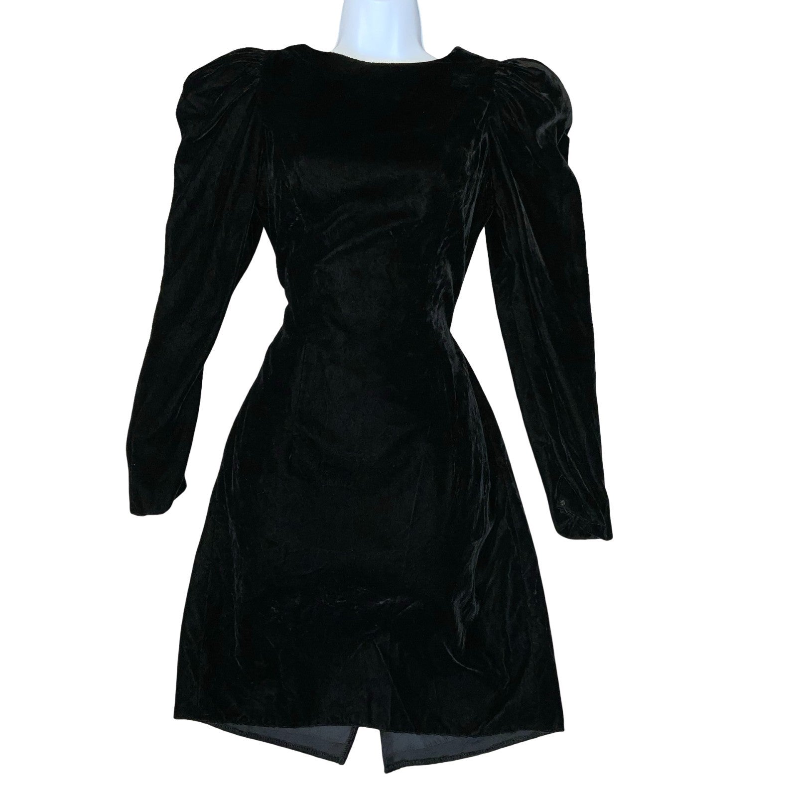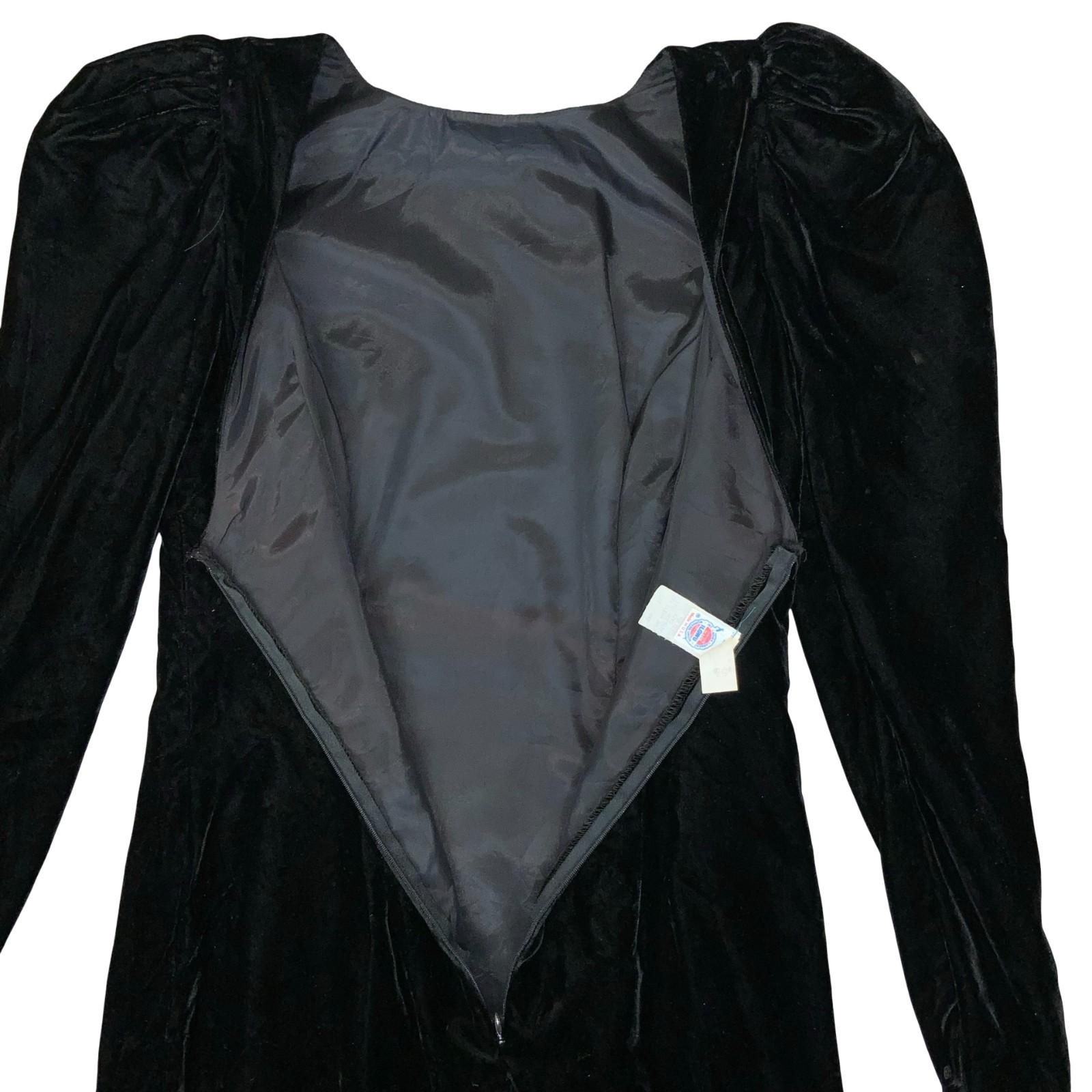 80s USA Union Made Black Velvet Big Shoulders Cocktail Party Mini Dress UK 10