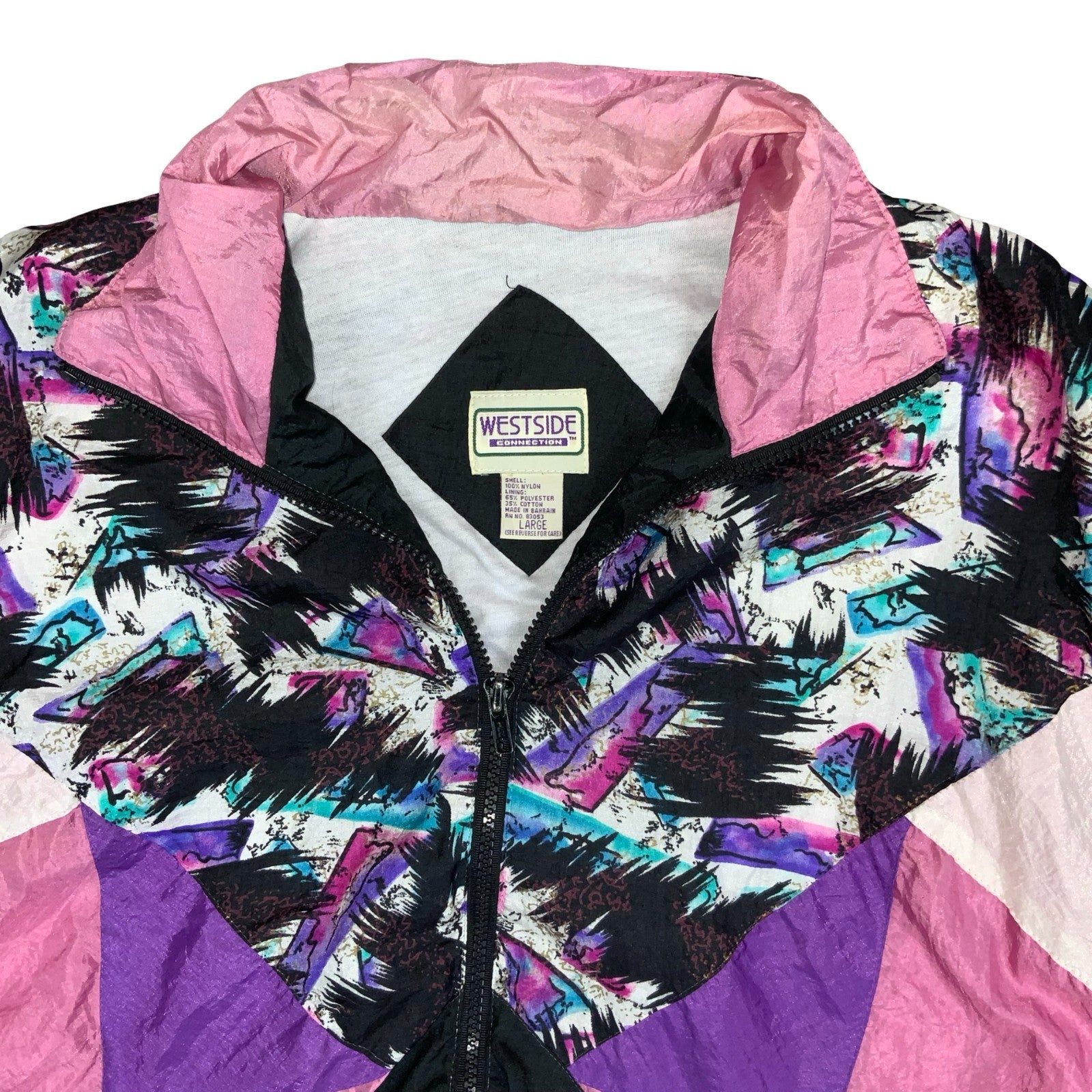 80s 'WESTSIDE CONNECTION' PINK BLACK GEOMETRIC ATHLETIC SHELL JACKET XL