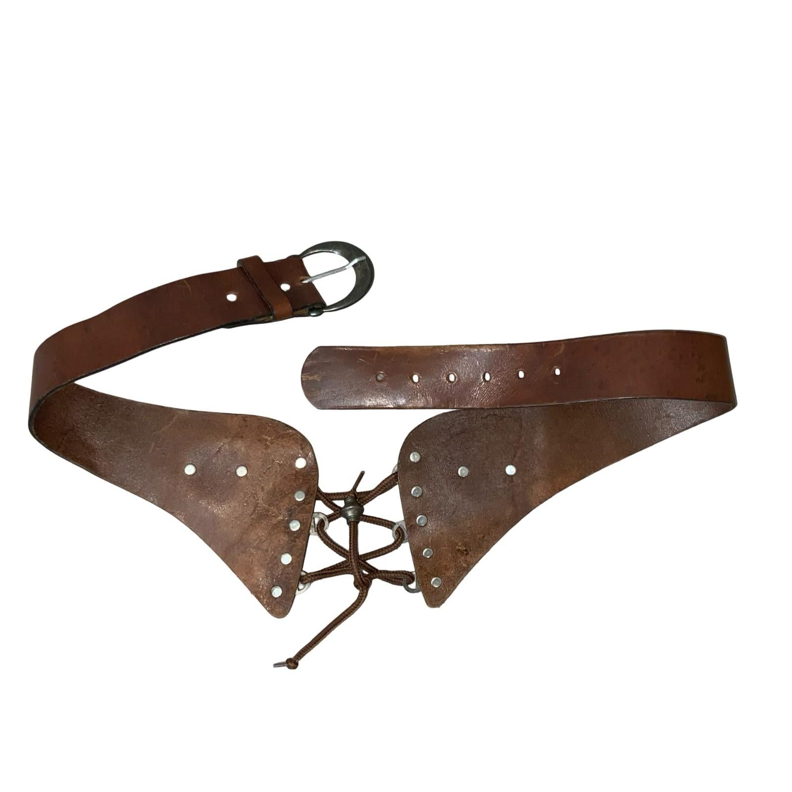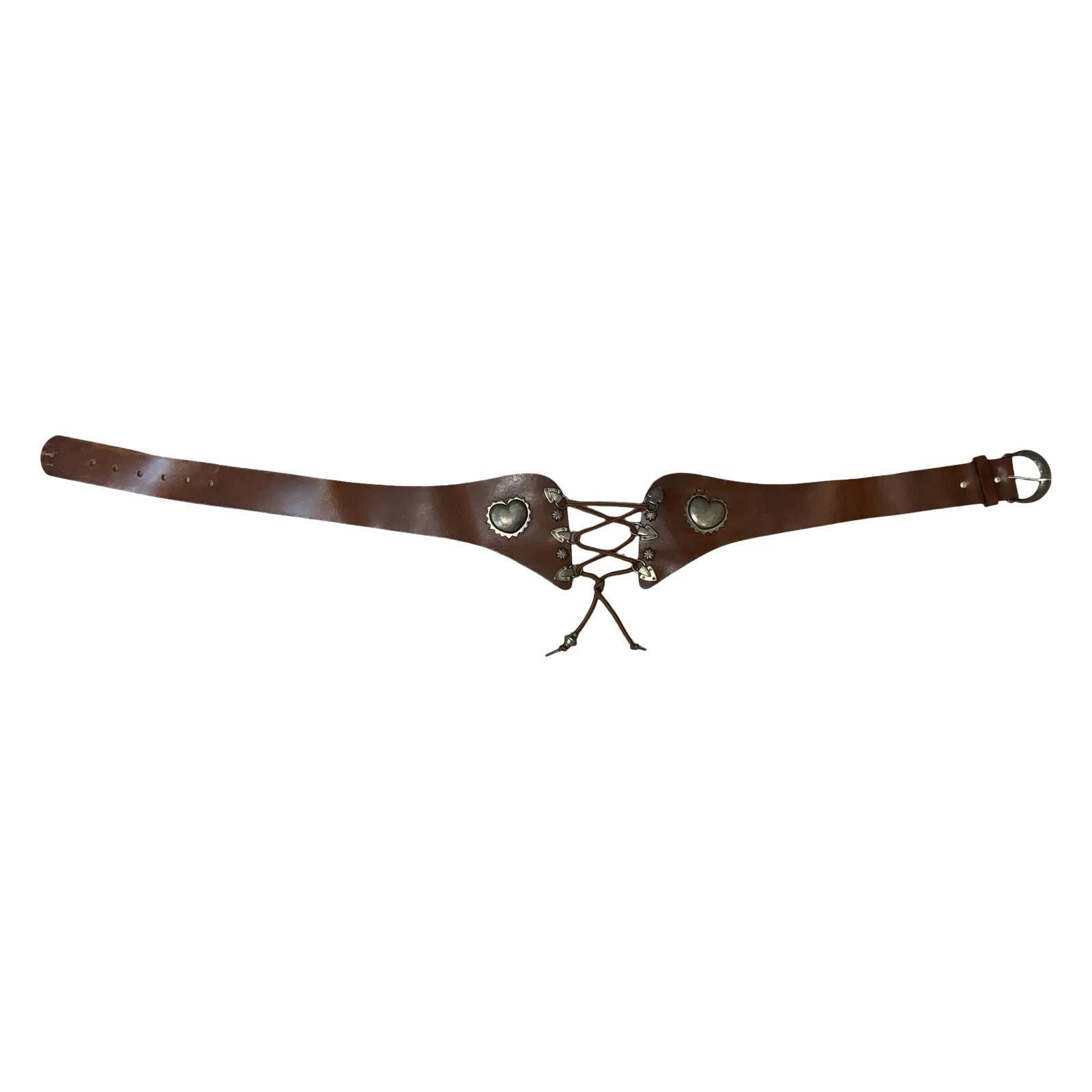 90s Brown Austrian Bavarian Dirndl Metal Heart Corset Style Leather Belt UK 12