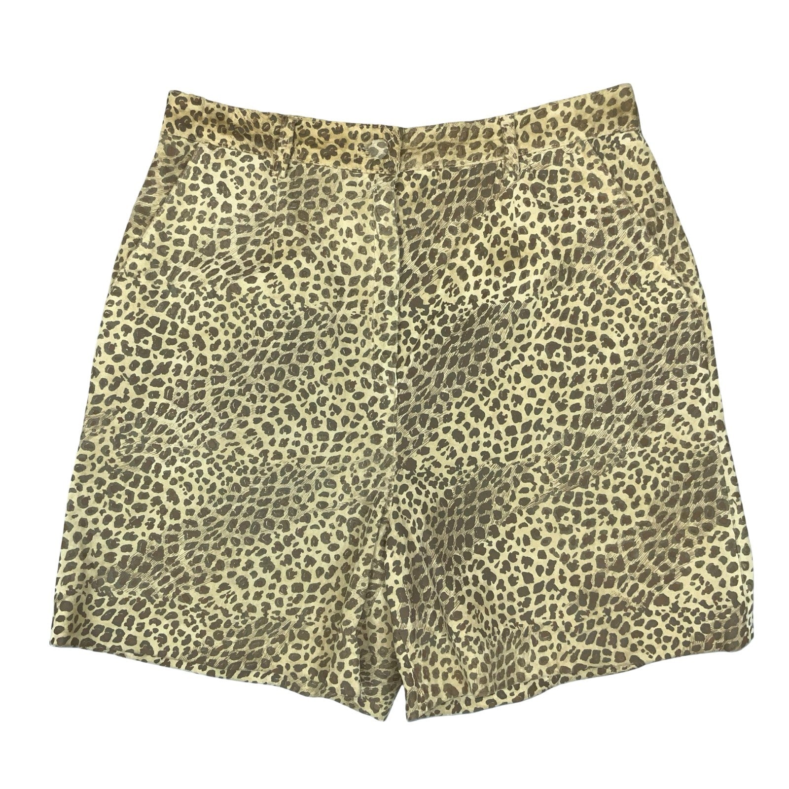 90s 'Class Inter' Cream Brown Suede Leather Animal Print High-Waist Shorts UK 16