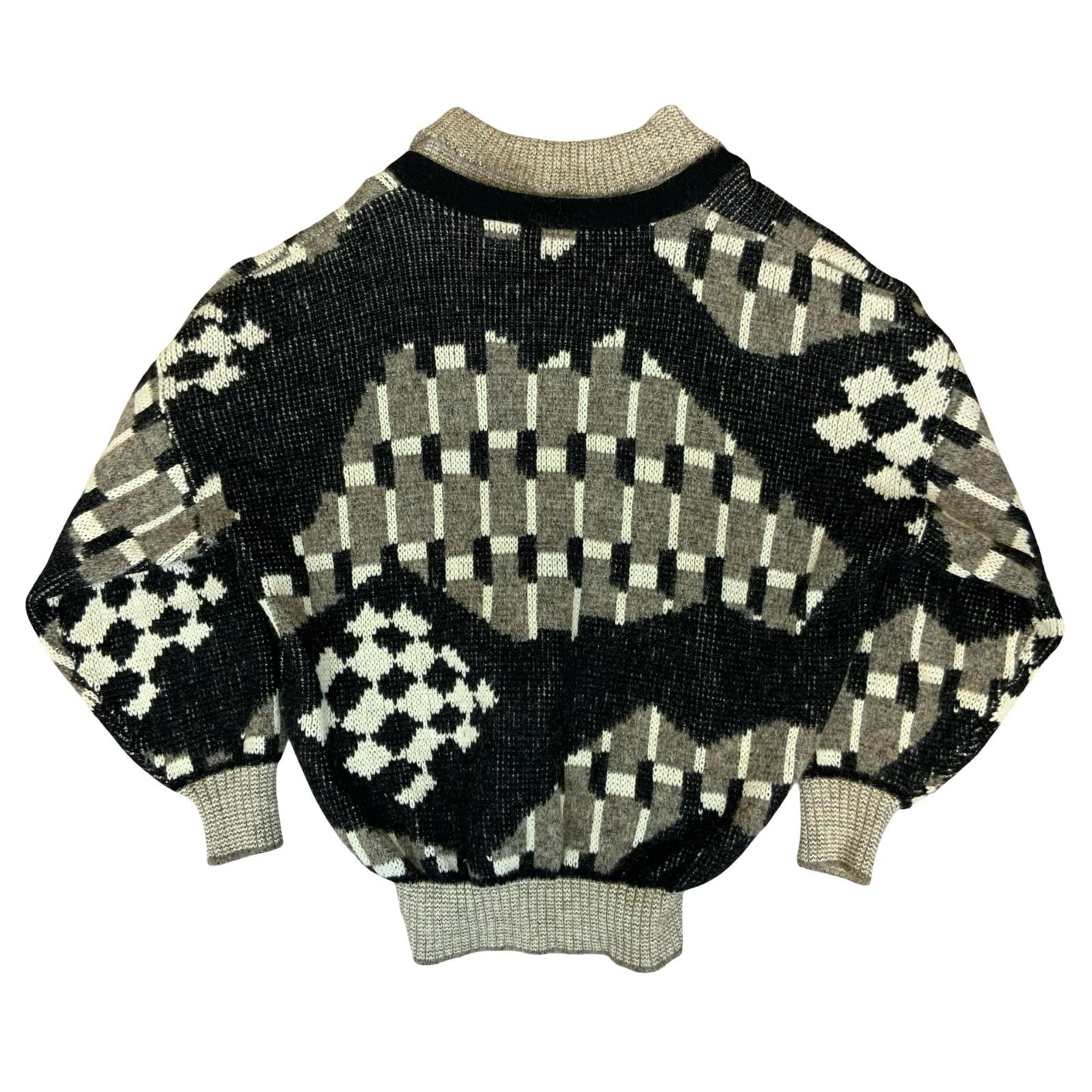 90s 'Hugo Boss' Grey Black Geometric Abstract V-Neck Knitted Sweater Jumper L