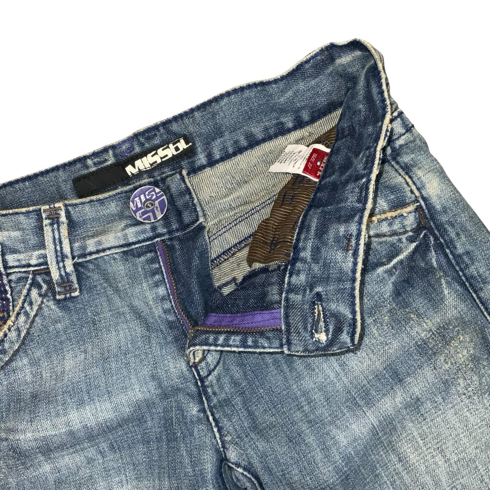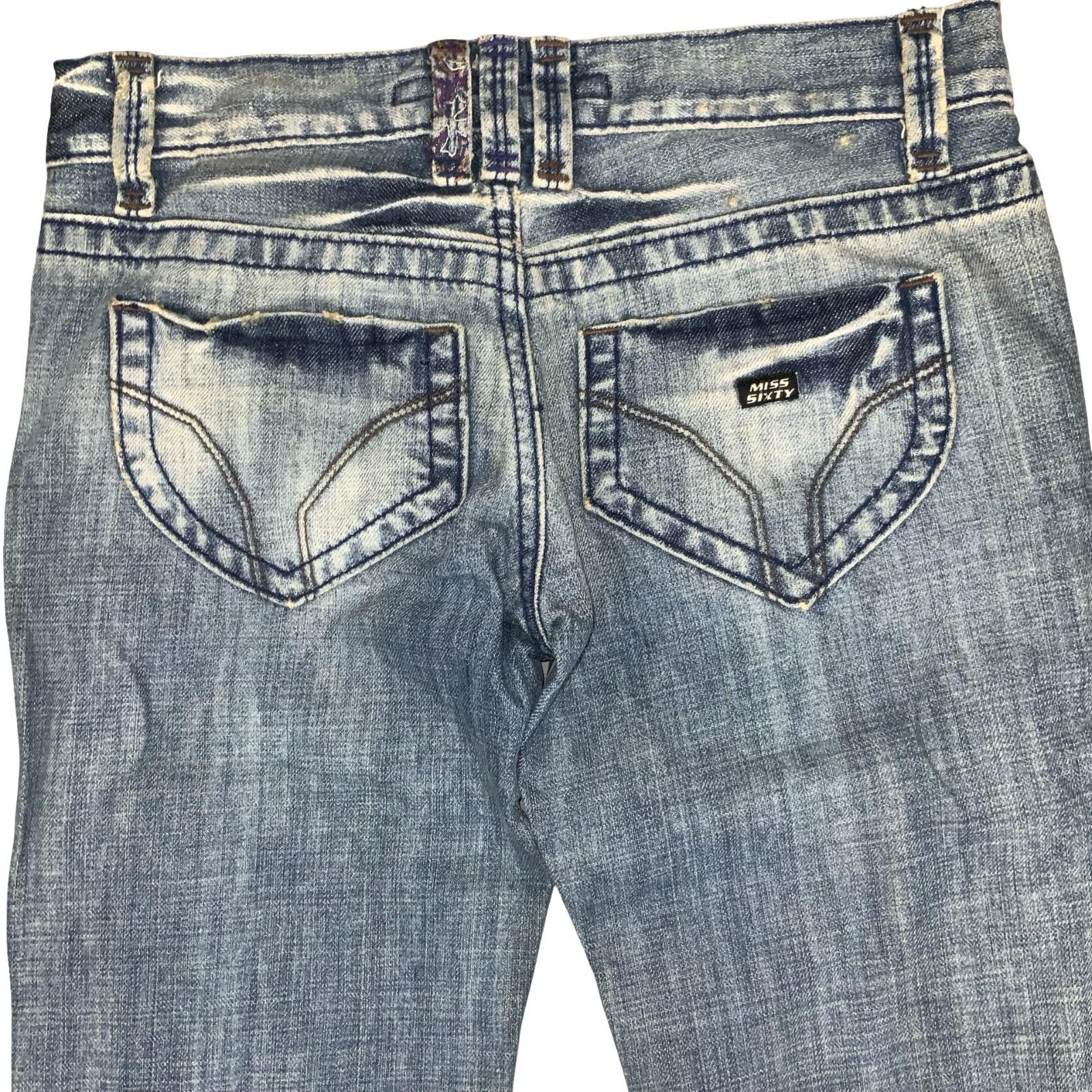 90s 'Miss Sixty' Blue Faded Distressed Straight Denim Jeans W30" L32" UK 10/12