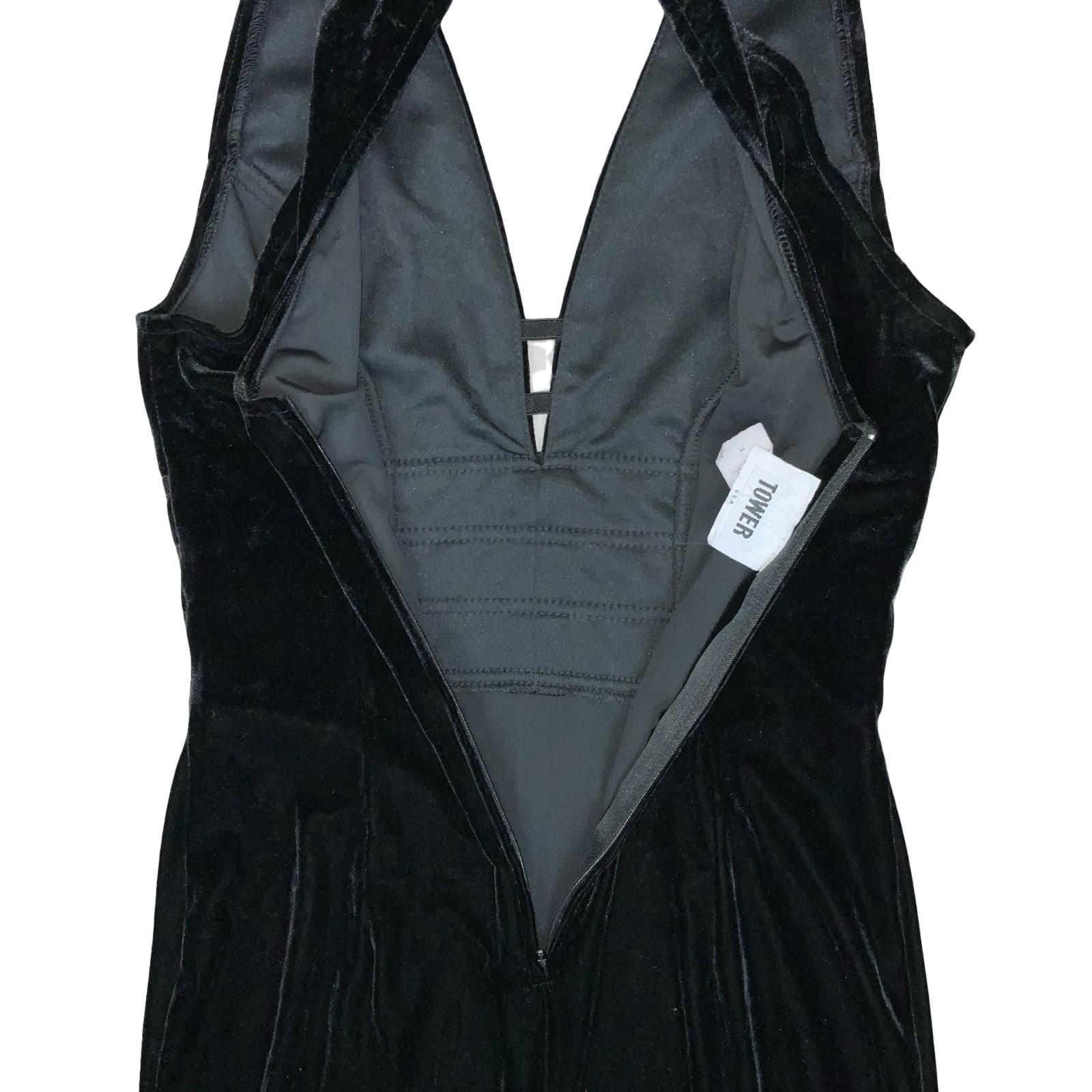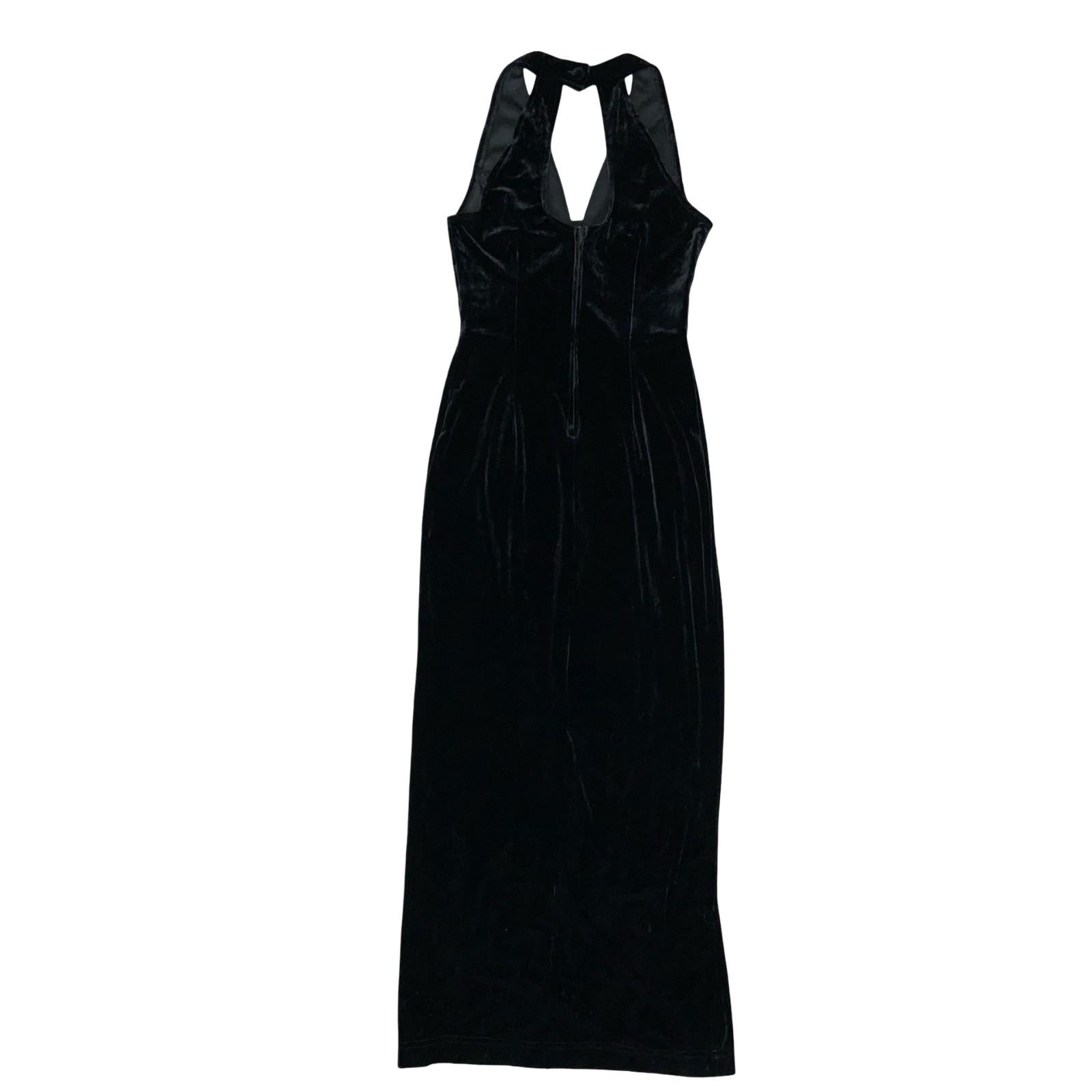 90s 'Tower U.S.A' Black Velvet Halter Elegant Prom Evening Couture Dress UK 6