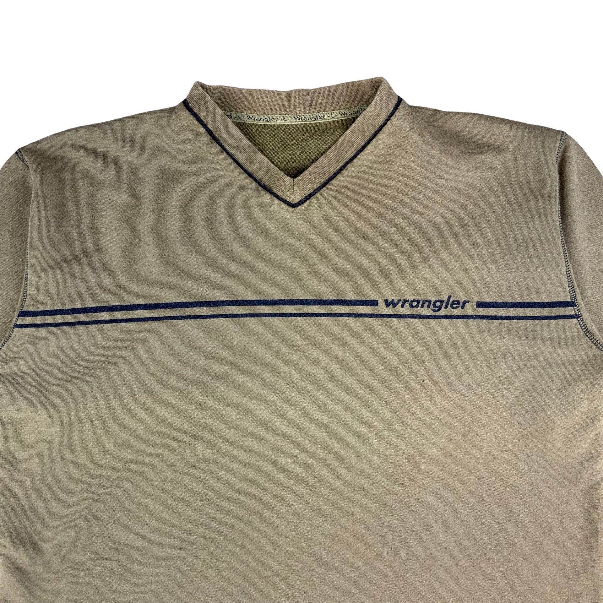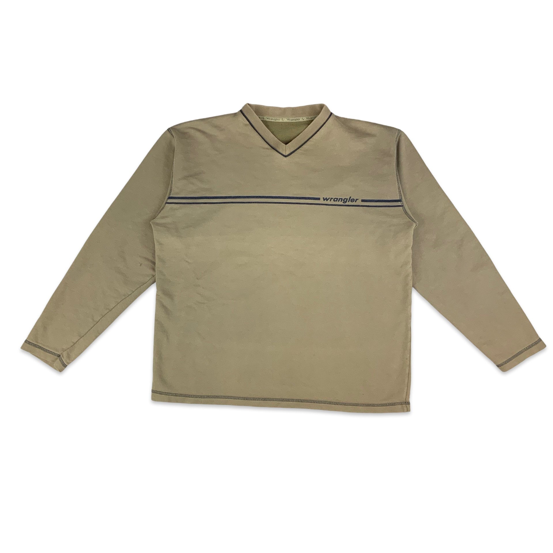 Men’s 90s/ Y2K Wrangler jumper. Brown & navy with V neck.