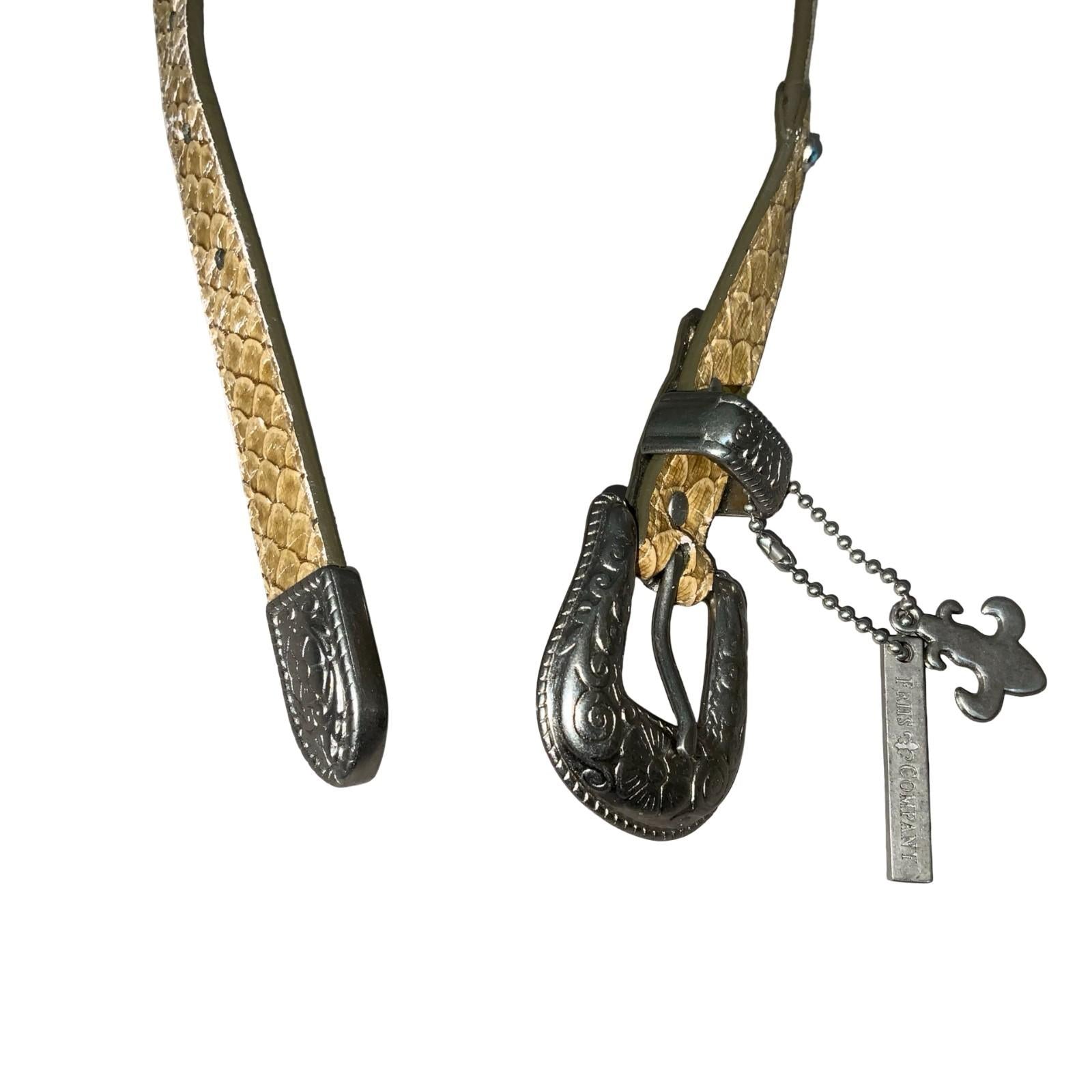 90s y2k 'Friis Company' Beige Brown Floral Embroidered Western Skinny Belt 37"