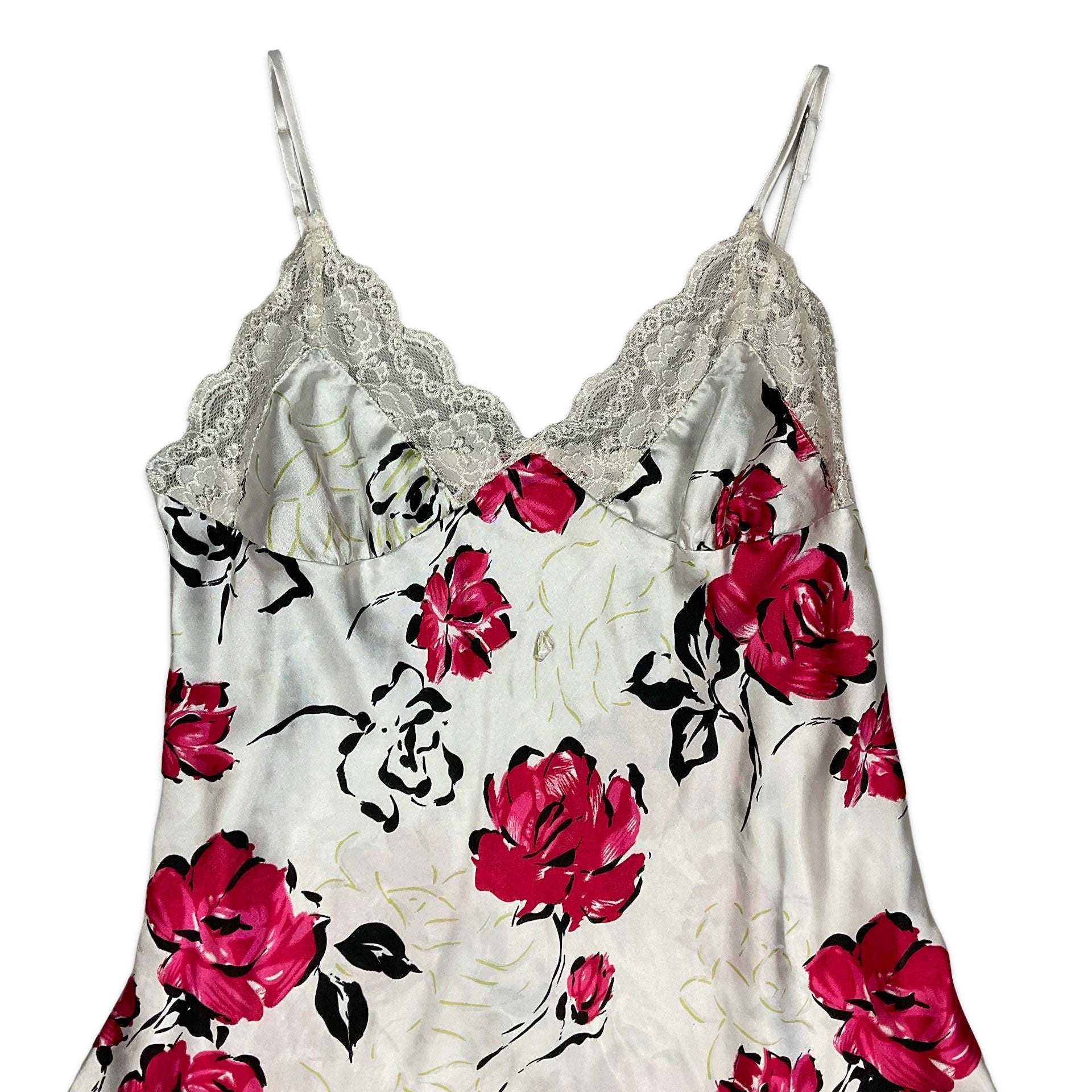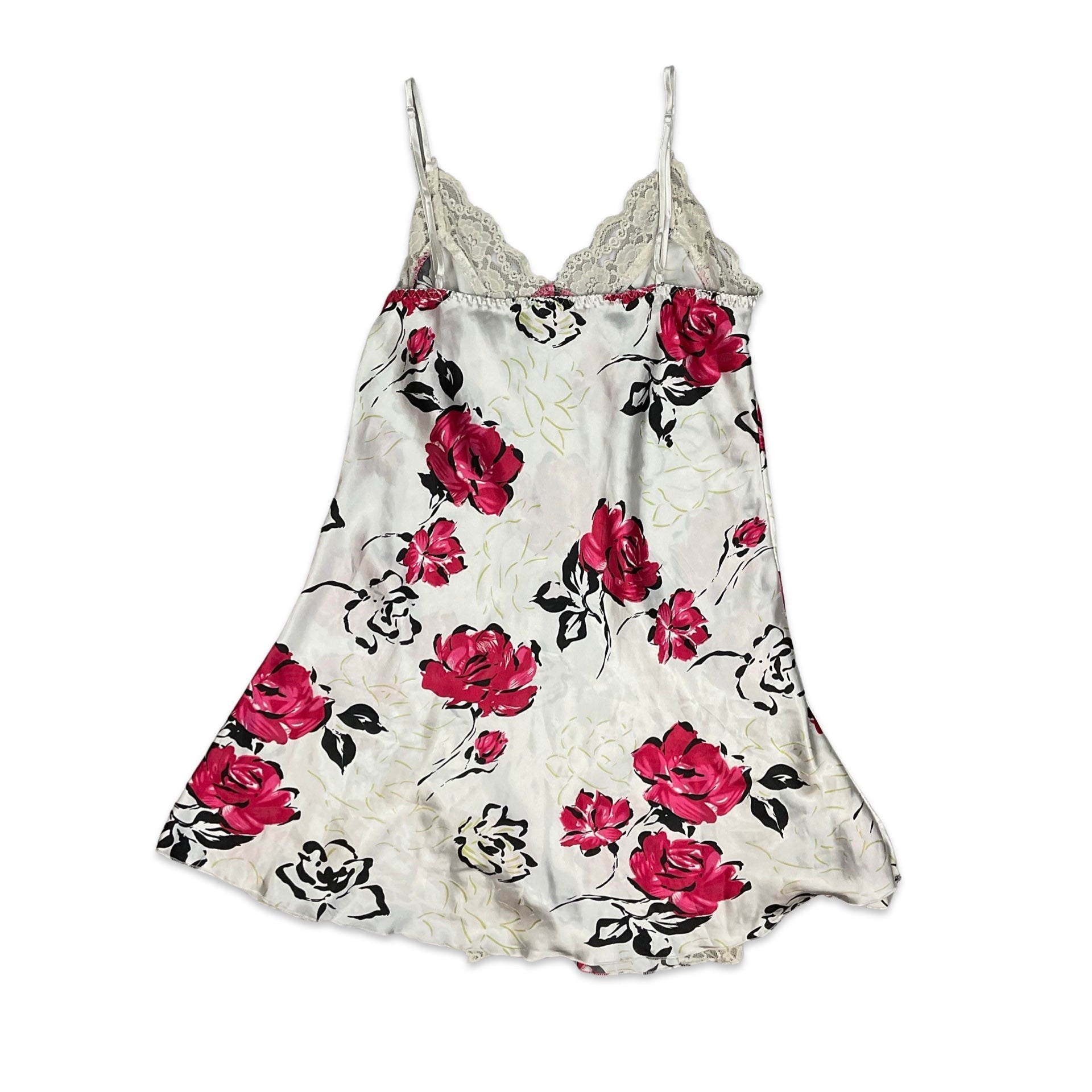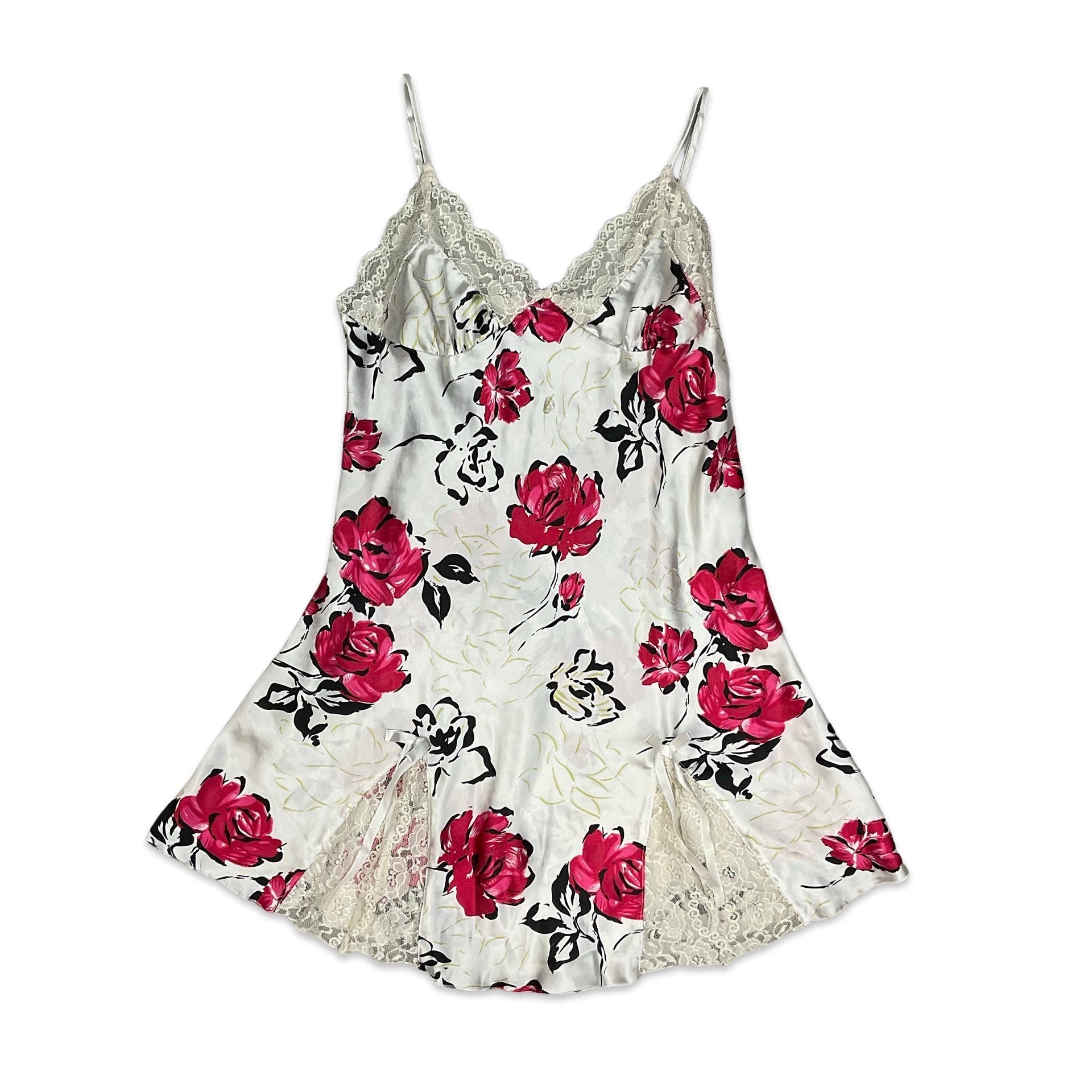 90s Y2K White & Pink Floral Slip Dress 10 12