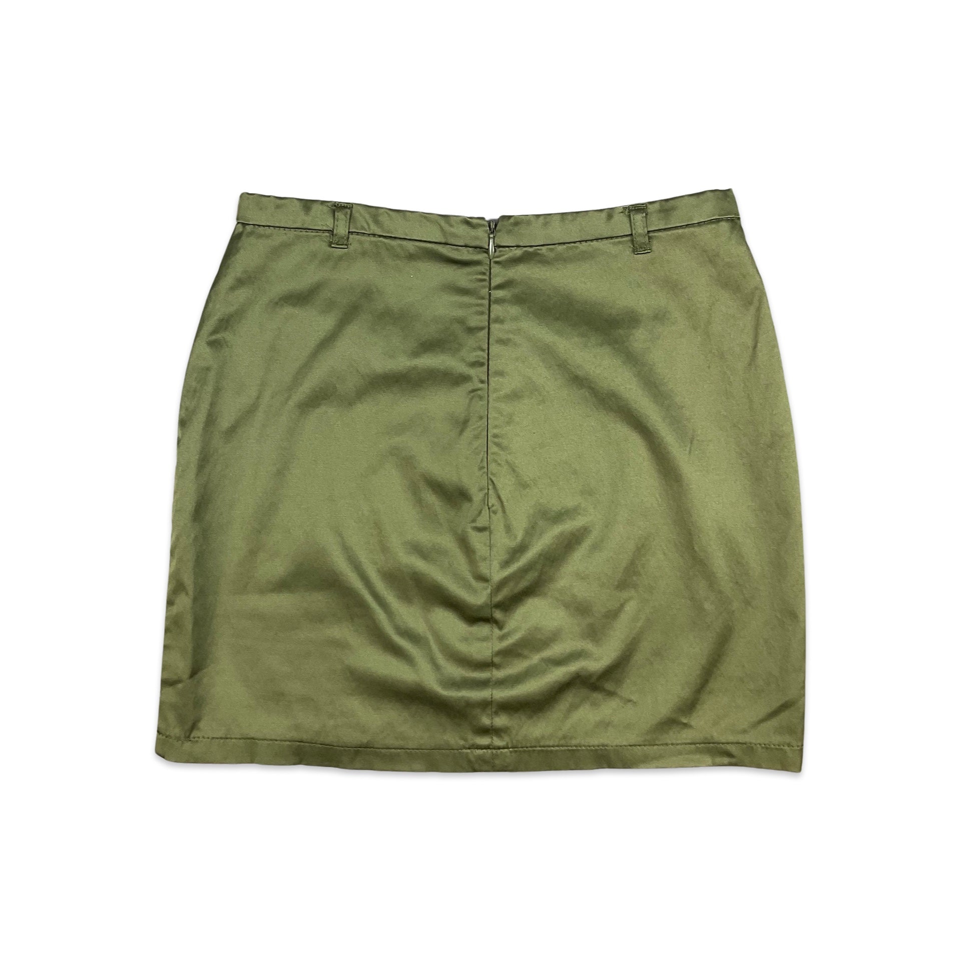 Vintage 90s Khaki Green Metallic Bodycon Mini Skirt 8 10