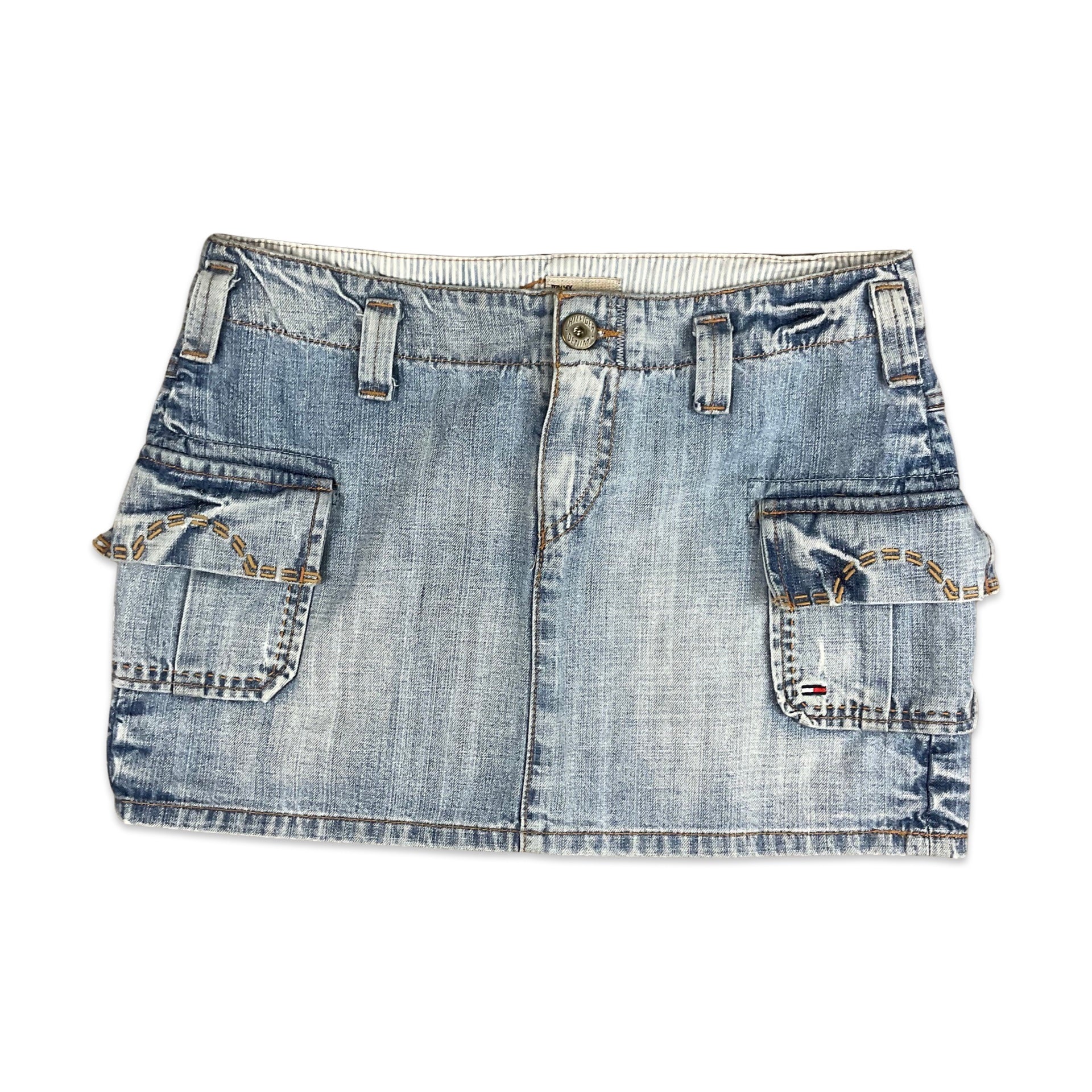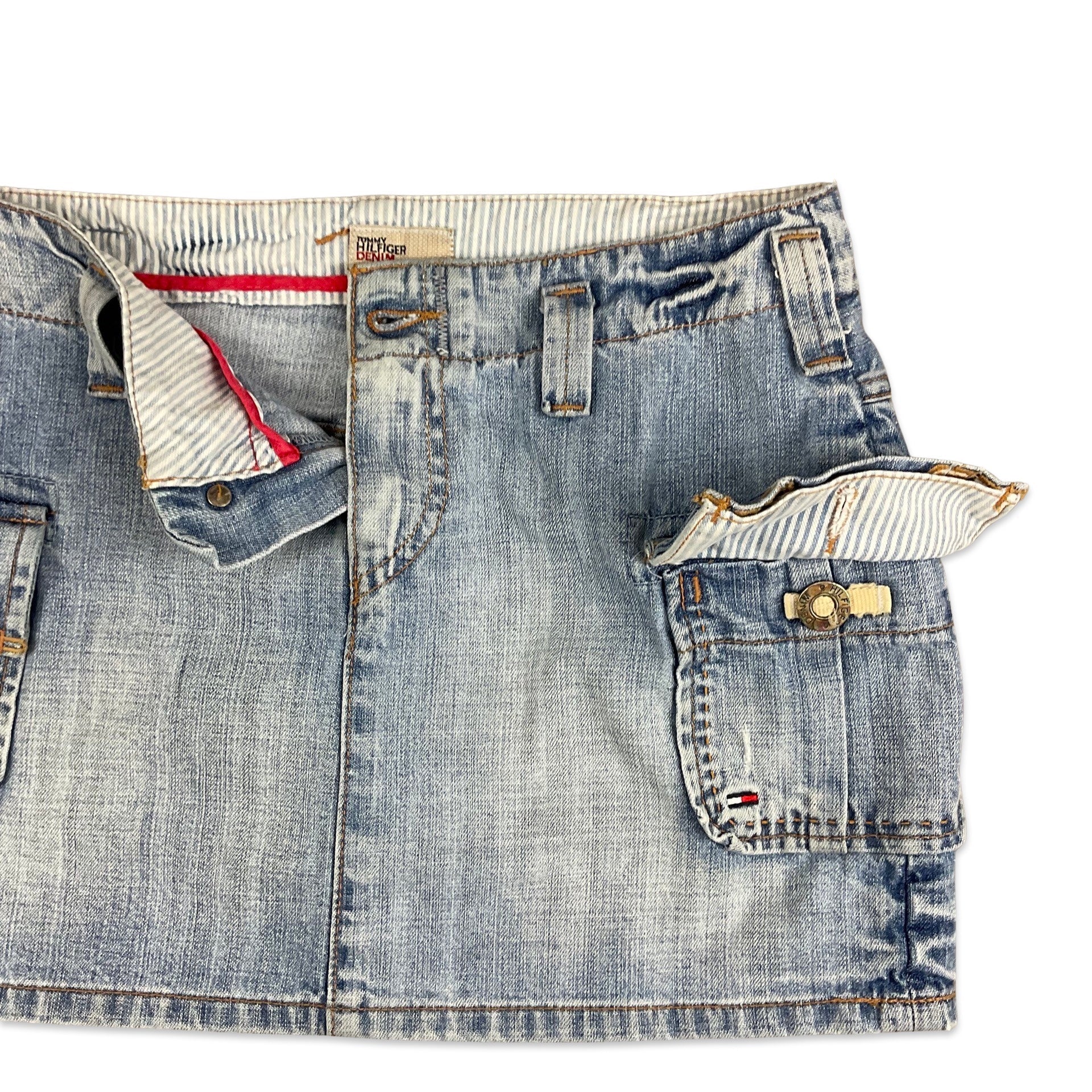 90s Y2K Light Blue Tommy Hilfiger Denim Mini Skirt 12 14
