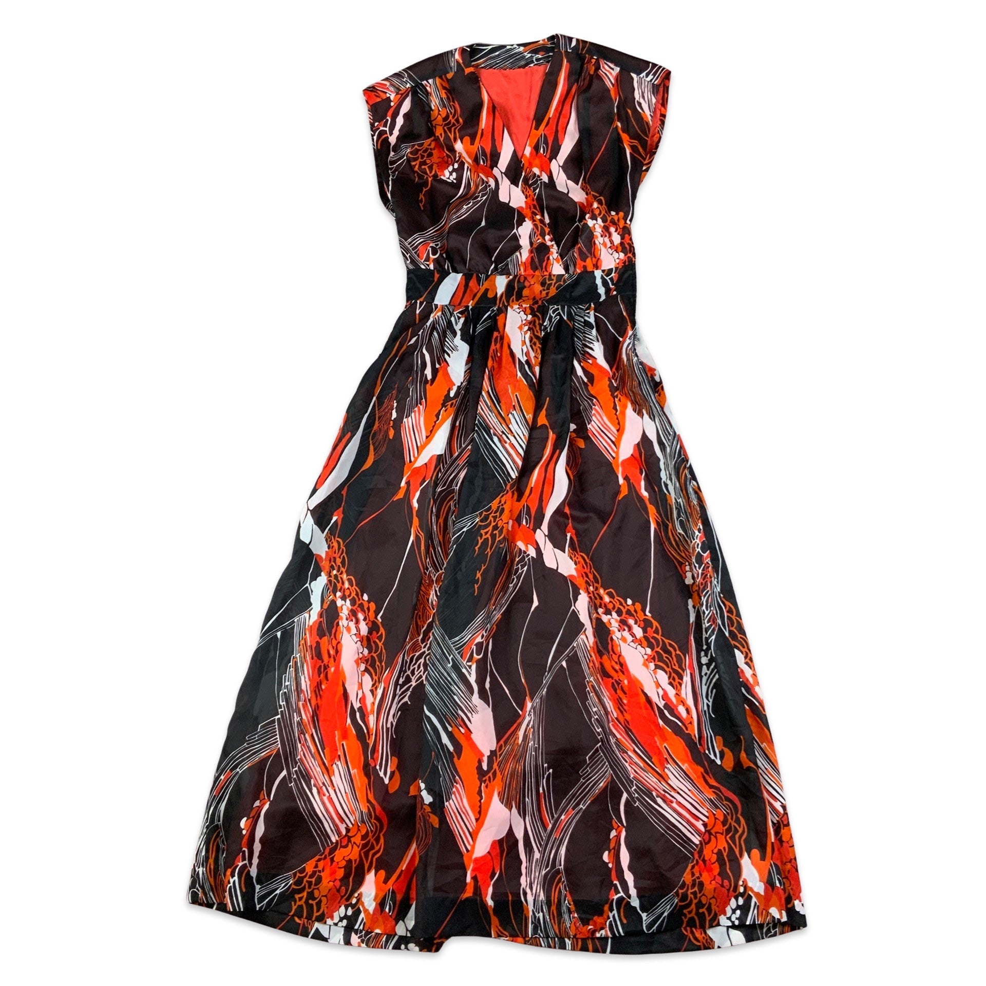 Vintage 70s Black & Orange Psychedelic Maxi Dress 8 10