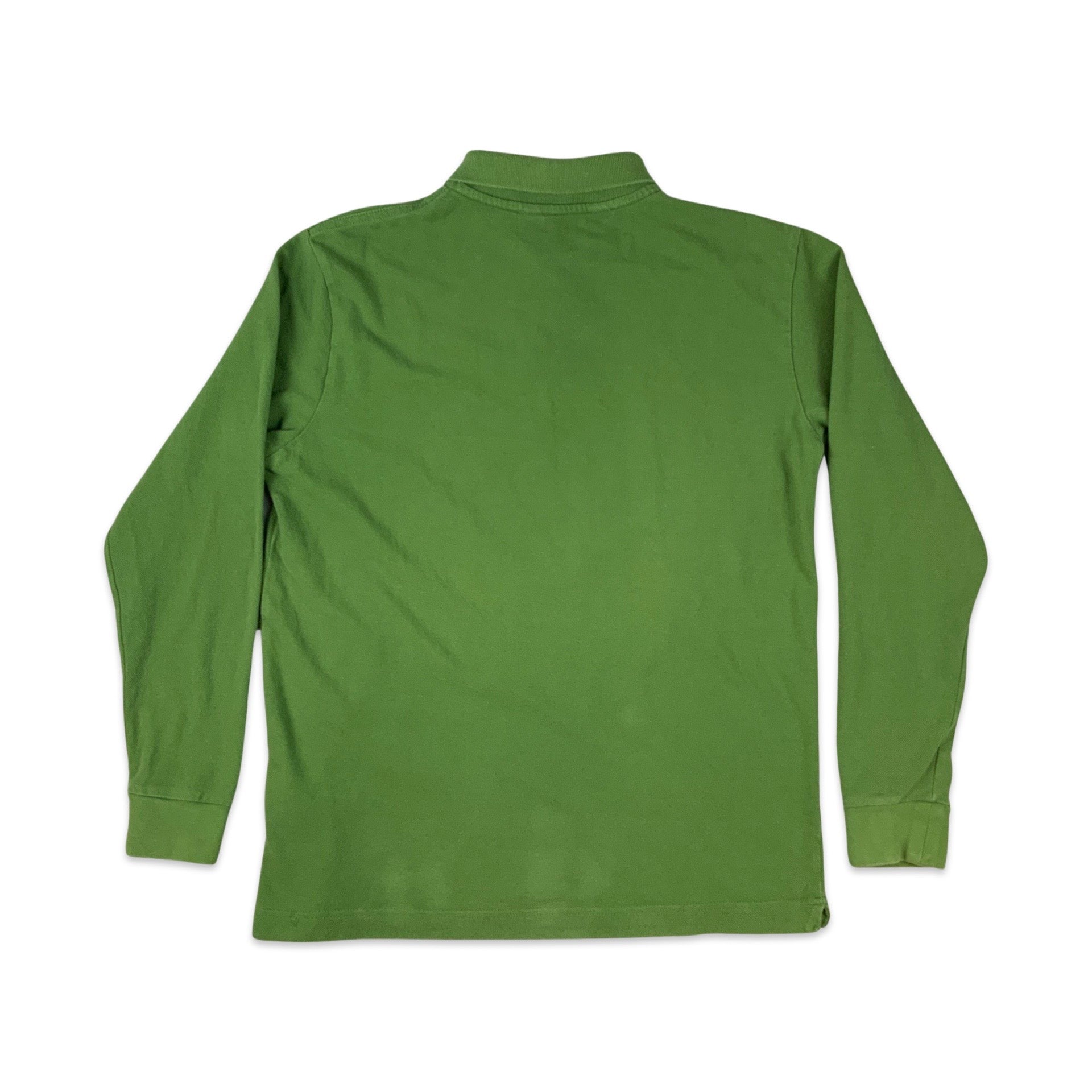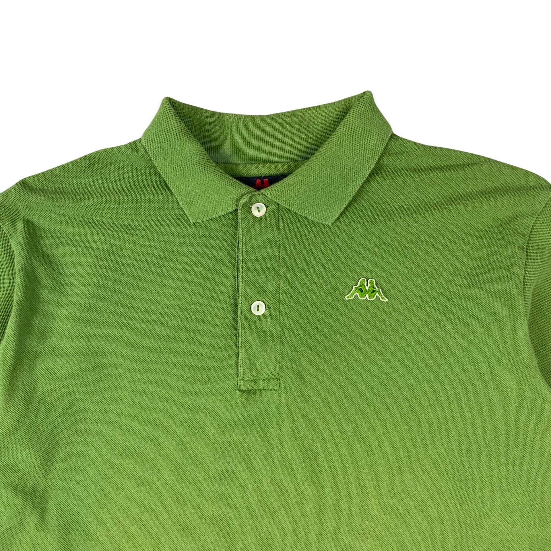 Men’s vintage Kappa rugby shirt. Green cotton fabric with 3 white button up collar.
