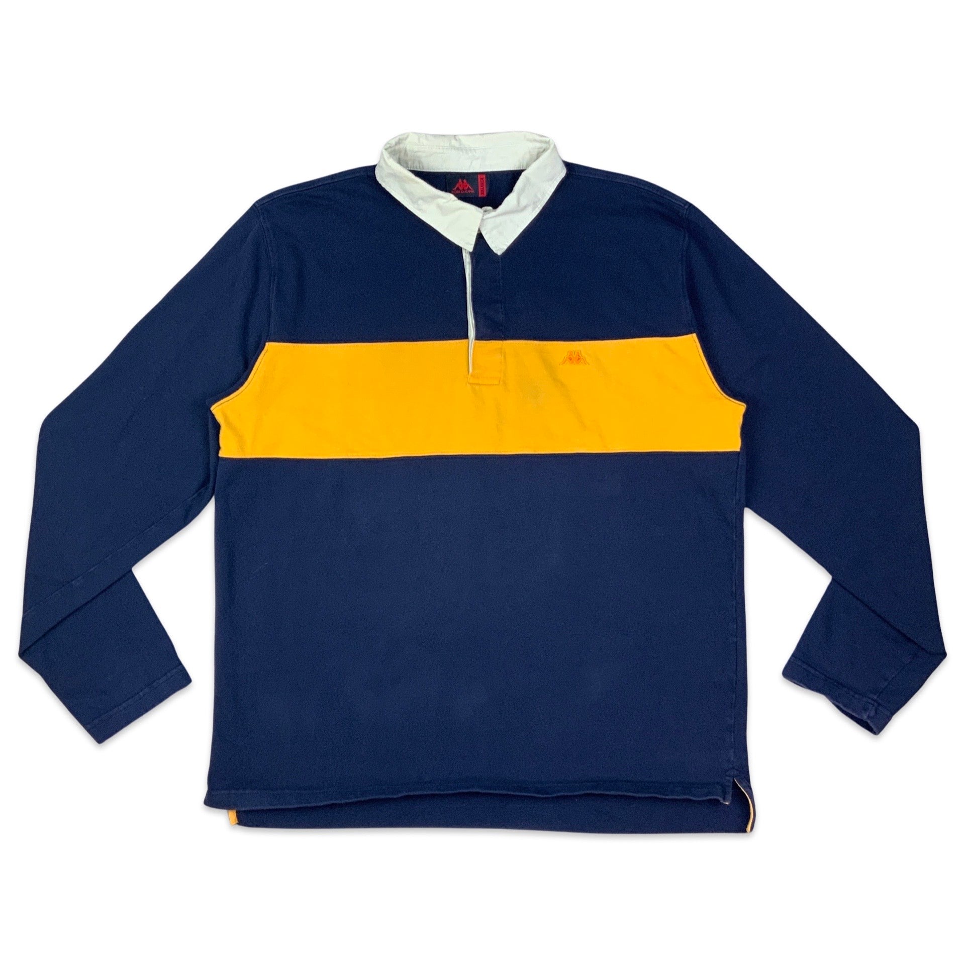Vintage Navy & Yellow Kappa Rugby Shirt L XL