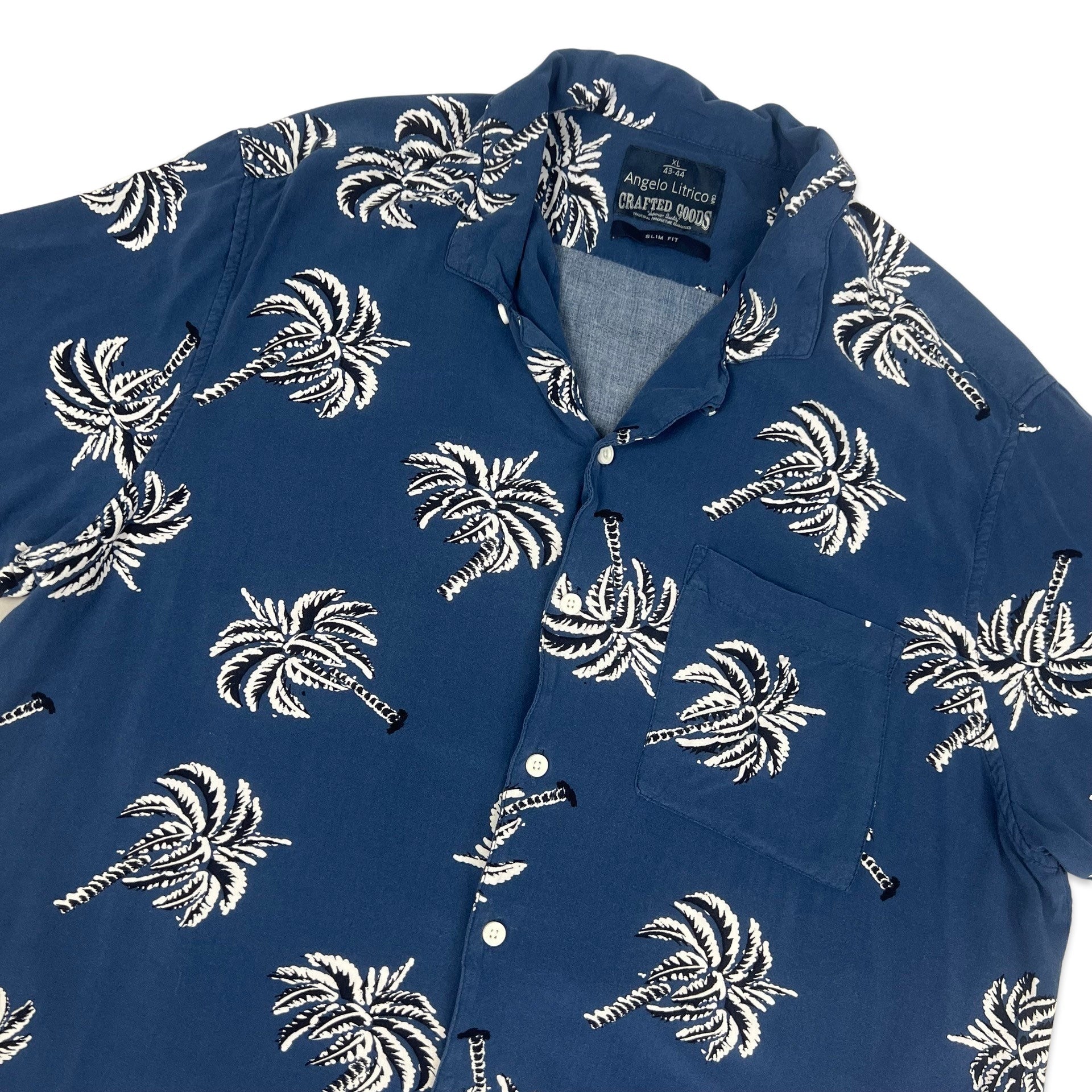 Angelo Litrico Blue Palm Tree Print Shirt L XL