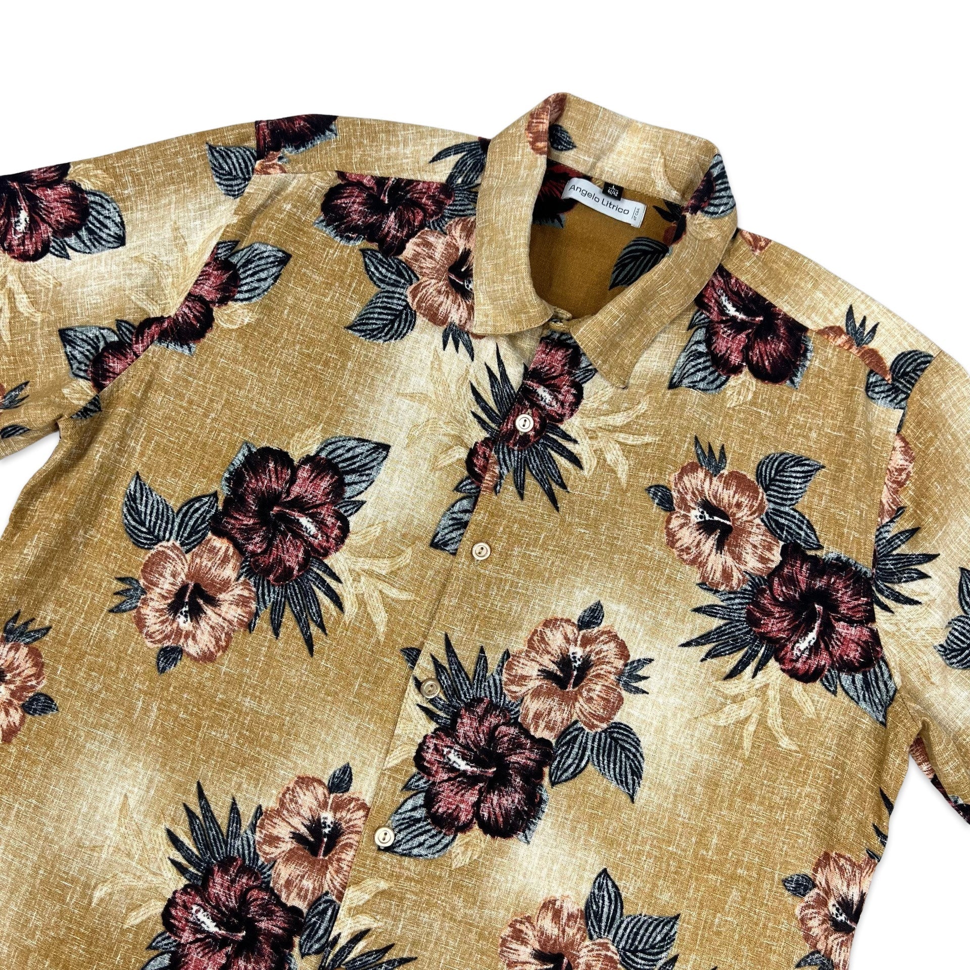 Preloved Angelo Litrico short sleeved men's shirt in brown with all-over floral print.