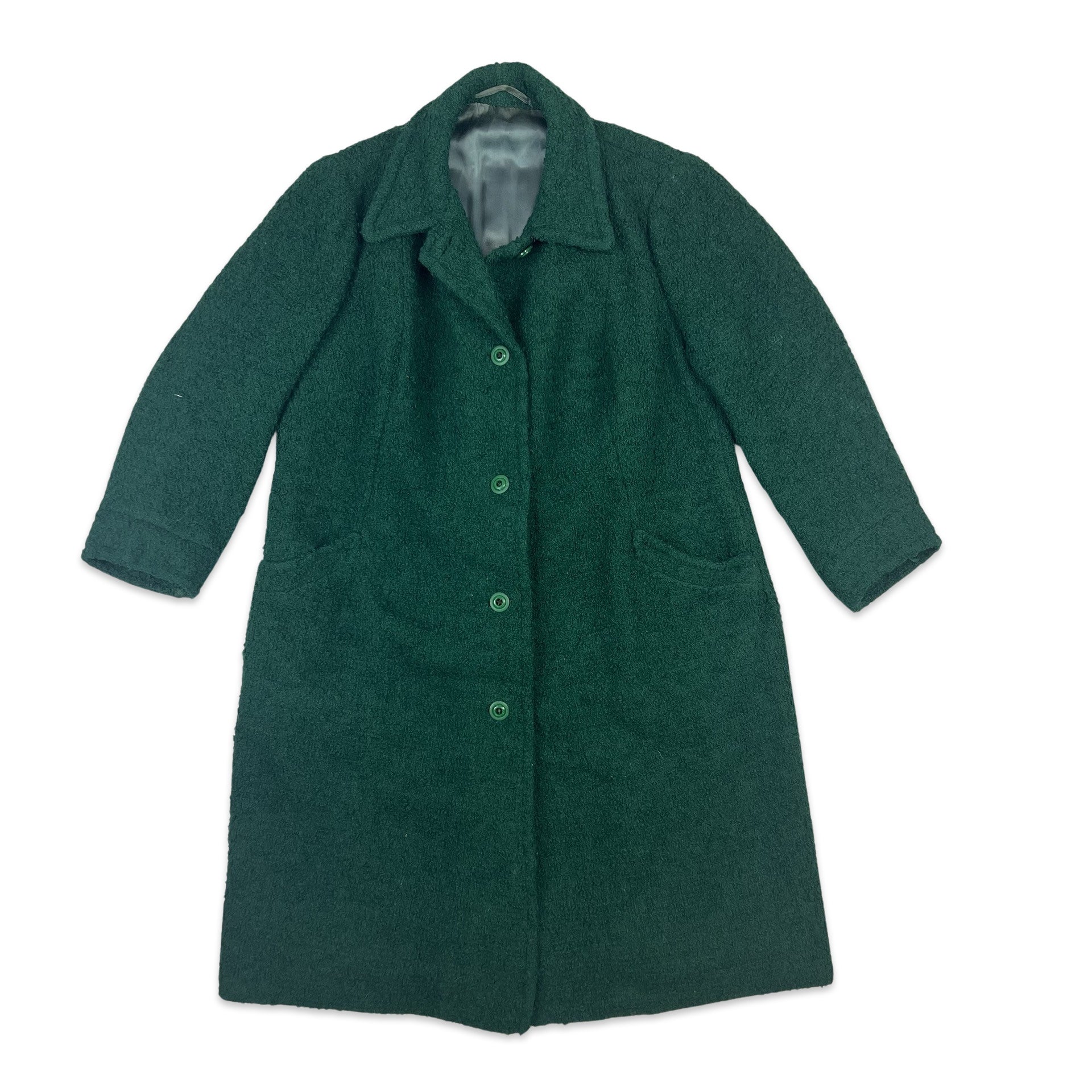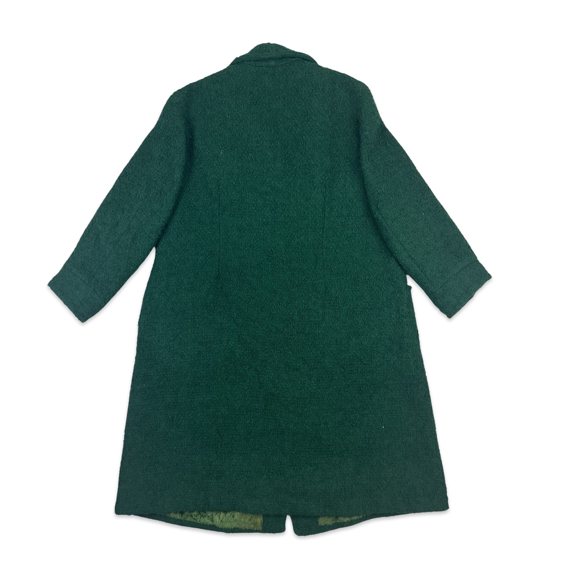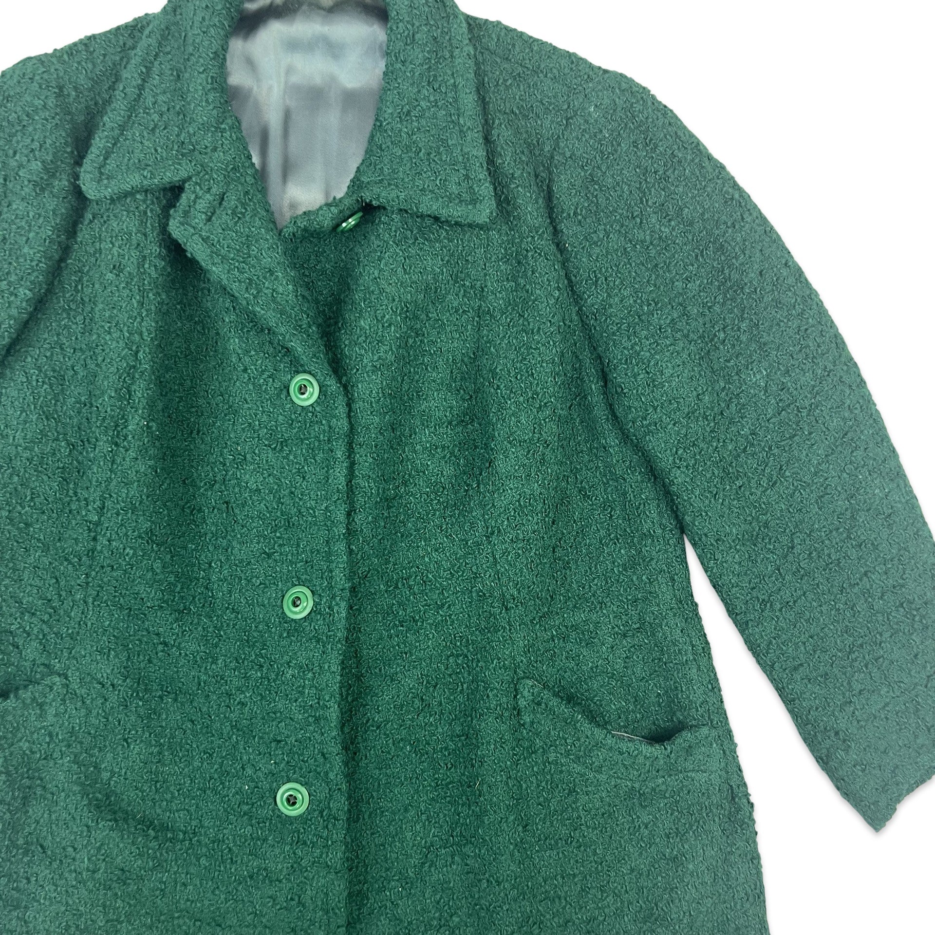 Vintage 70s Wool Bouclé Midi Coat Green 14 16 18