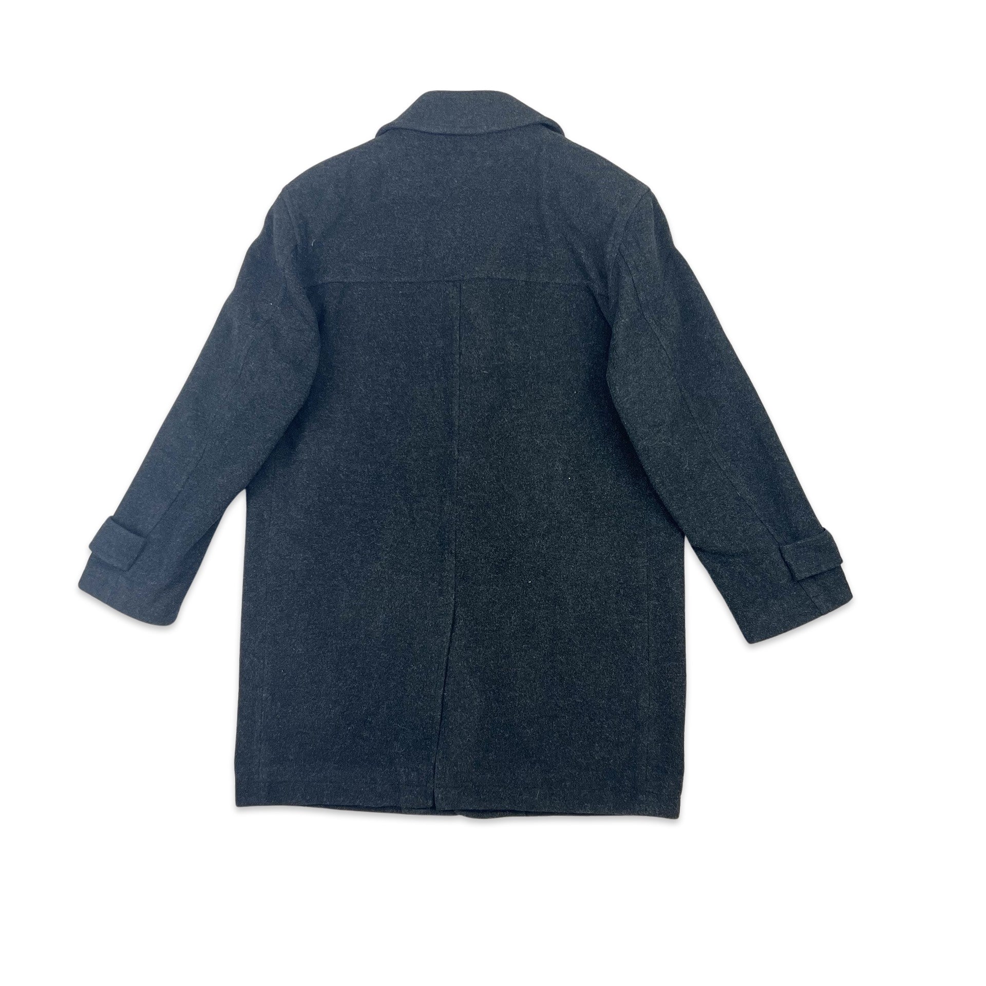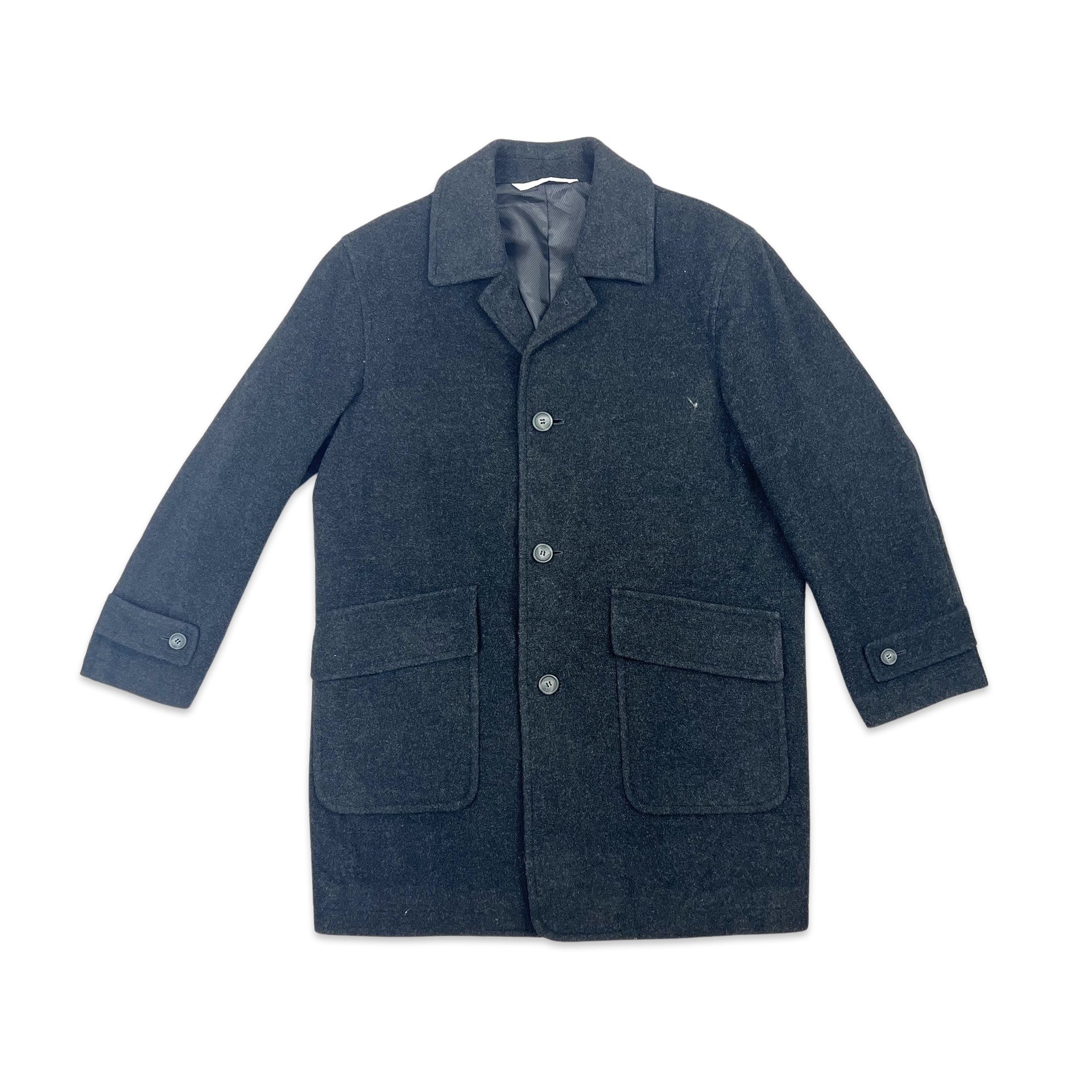 Vintage 80s Midi Wool Coat Charcoal Black Medium