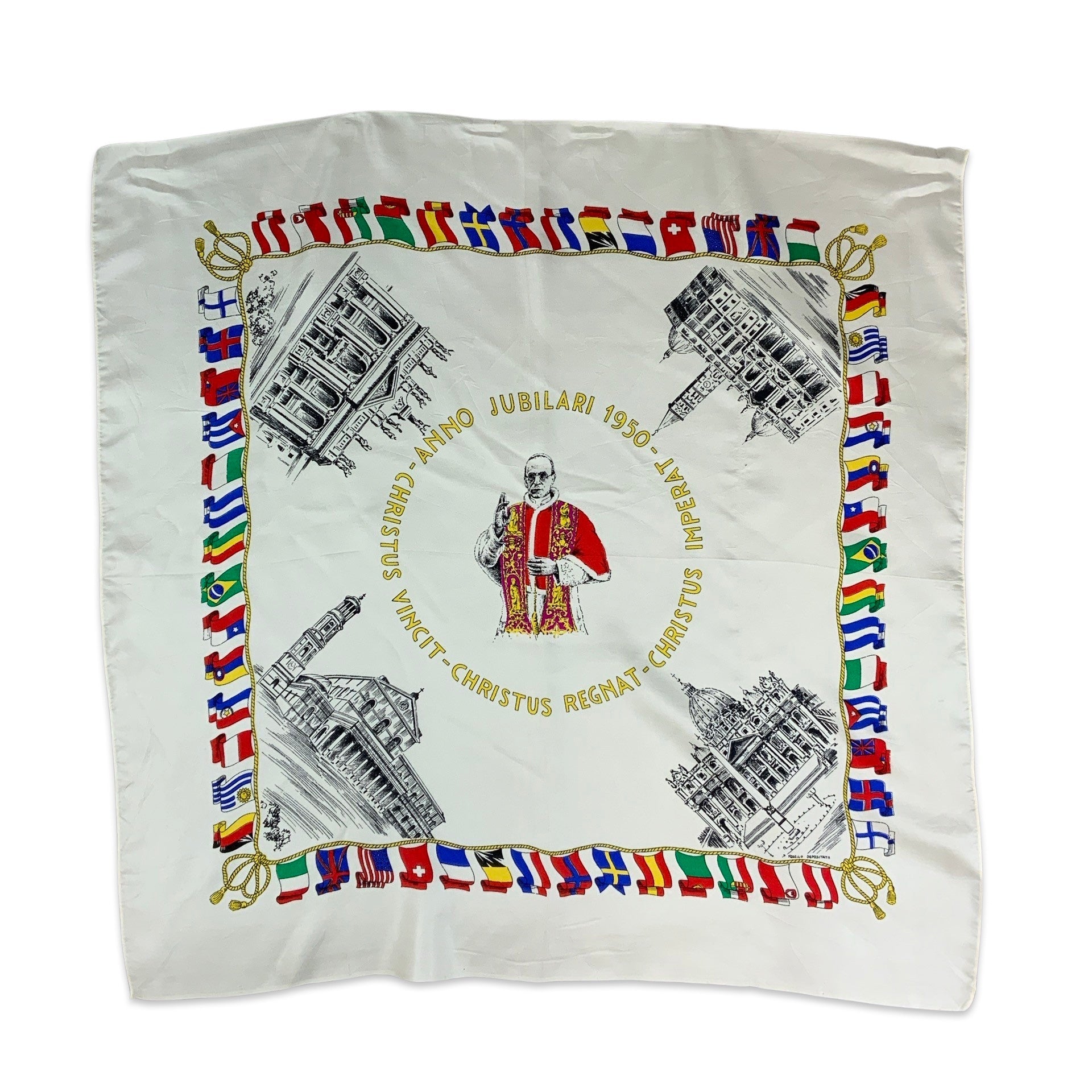 Vintage silk blend scarf. Italian/Latin souvenir print.