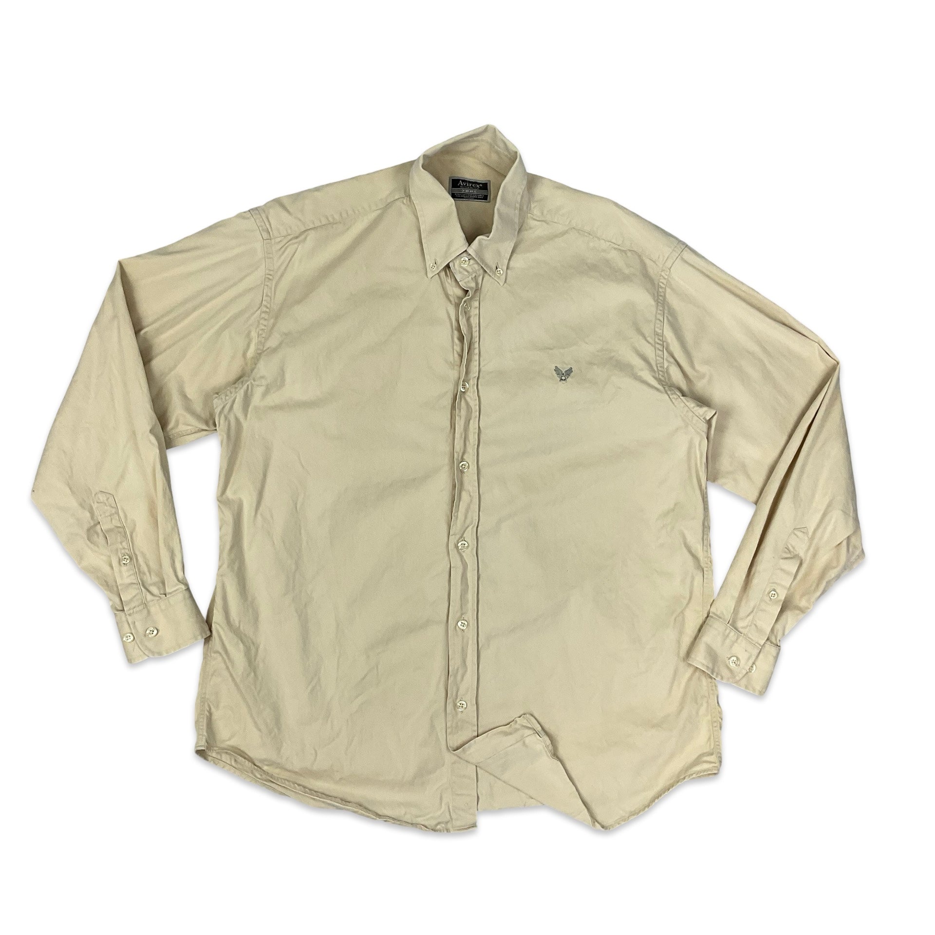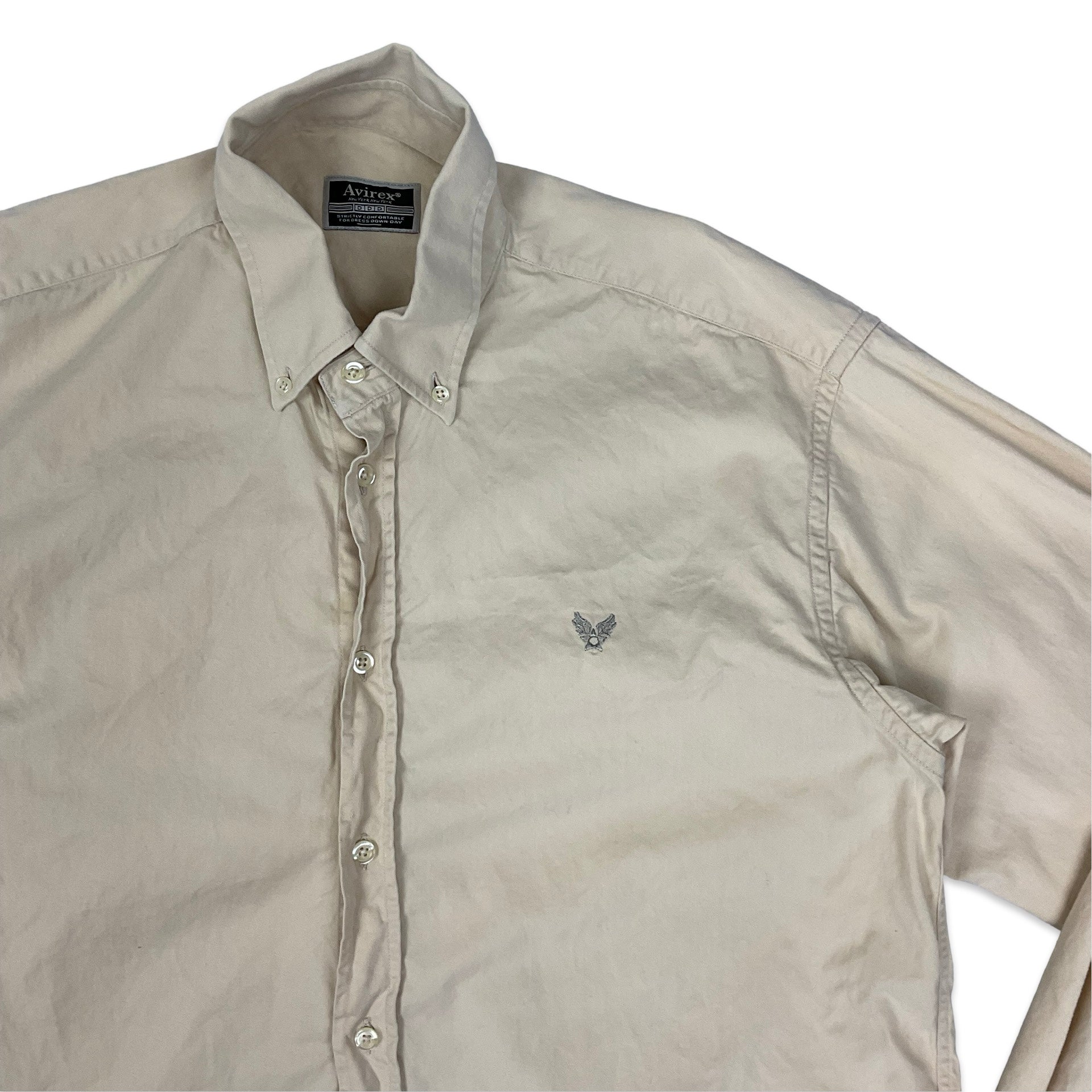Preloved Avirex button-up plain shirt in beige with small embroidered logo on chest.