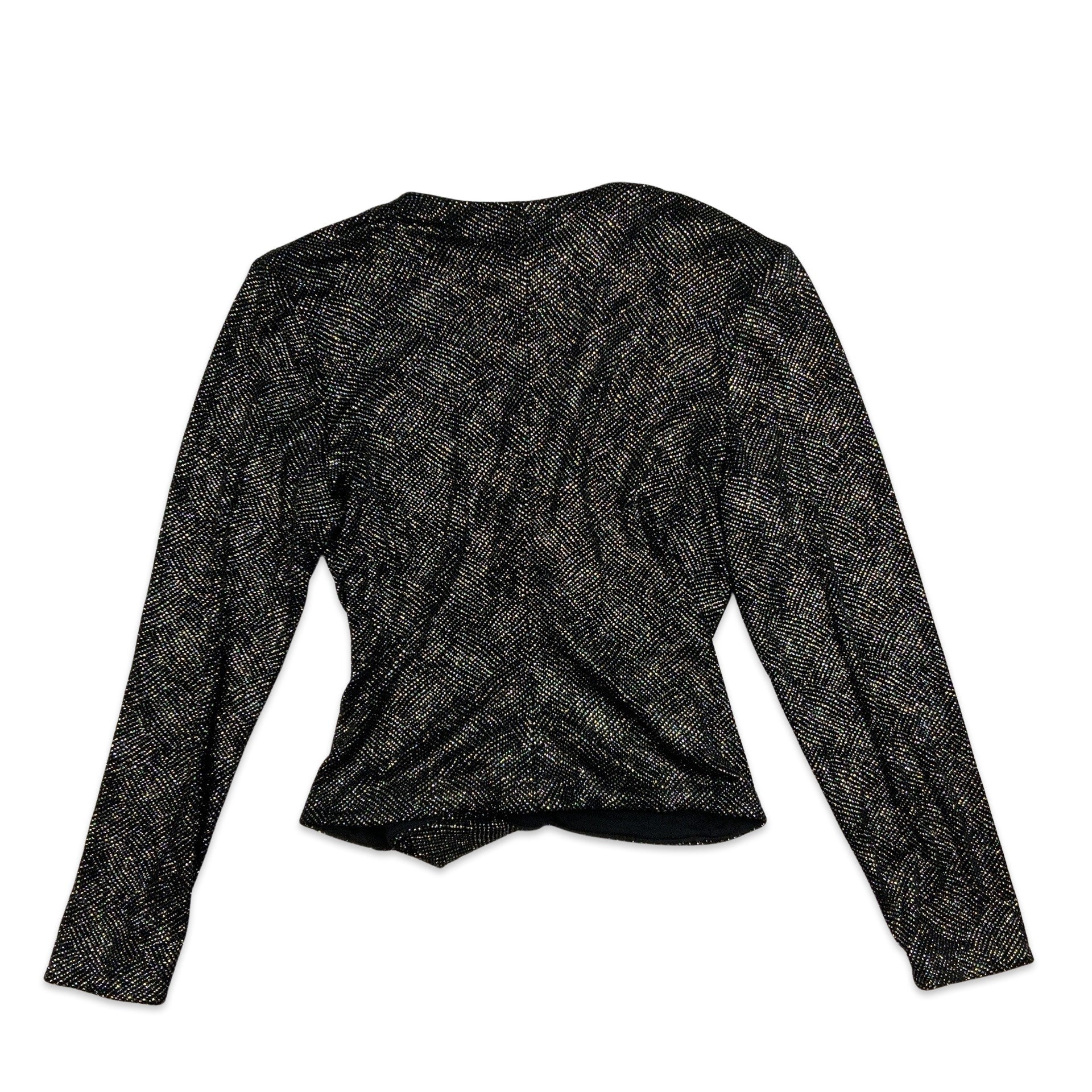 Vintage 80s Lurex Blouse Black Silver Purple 10 12