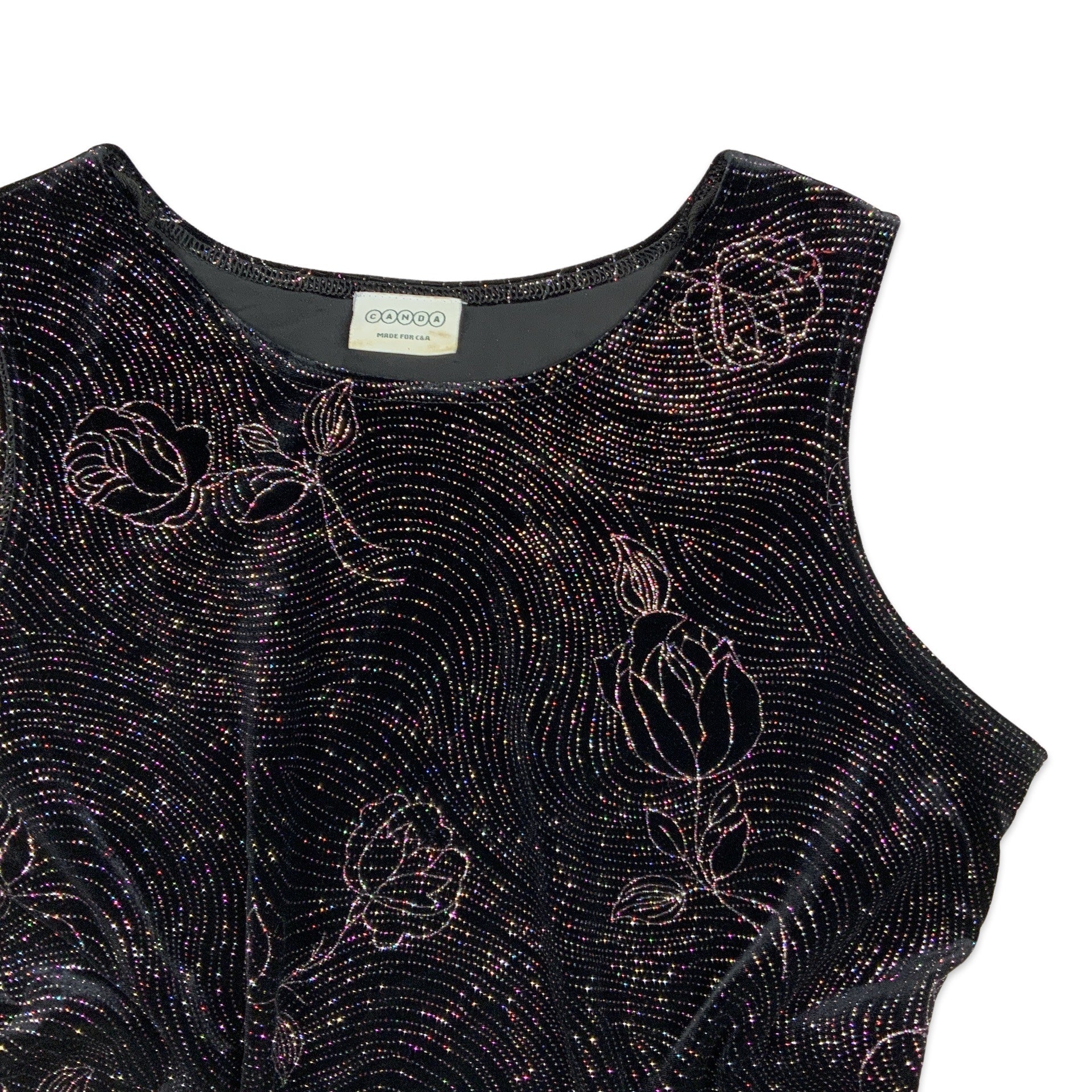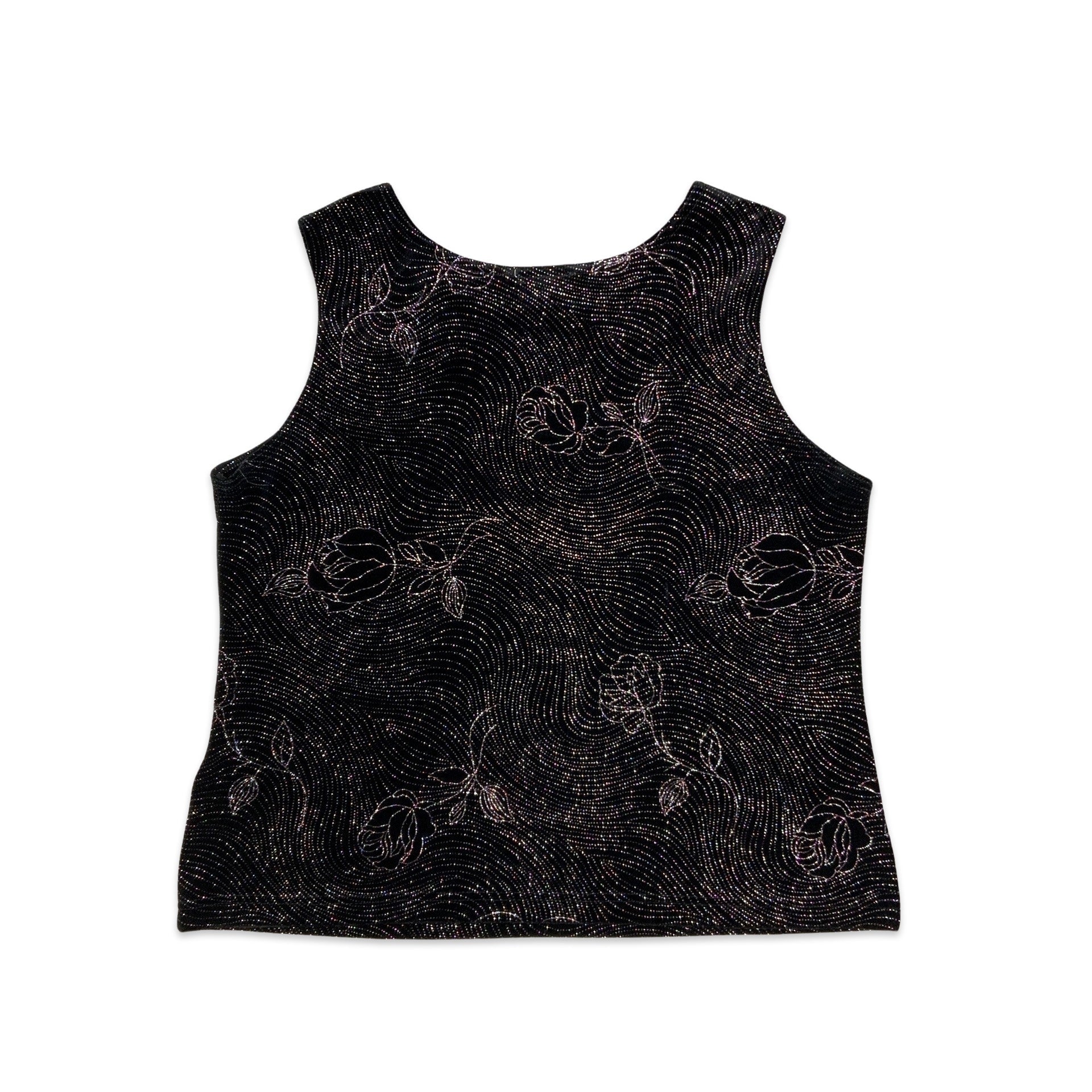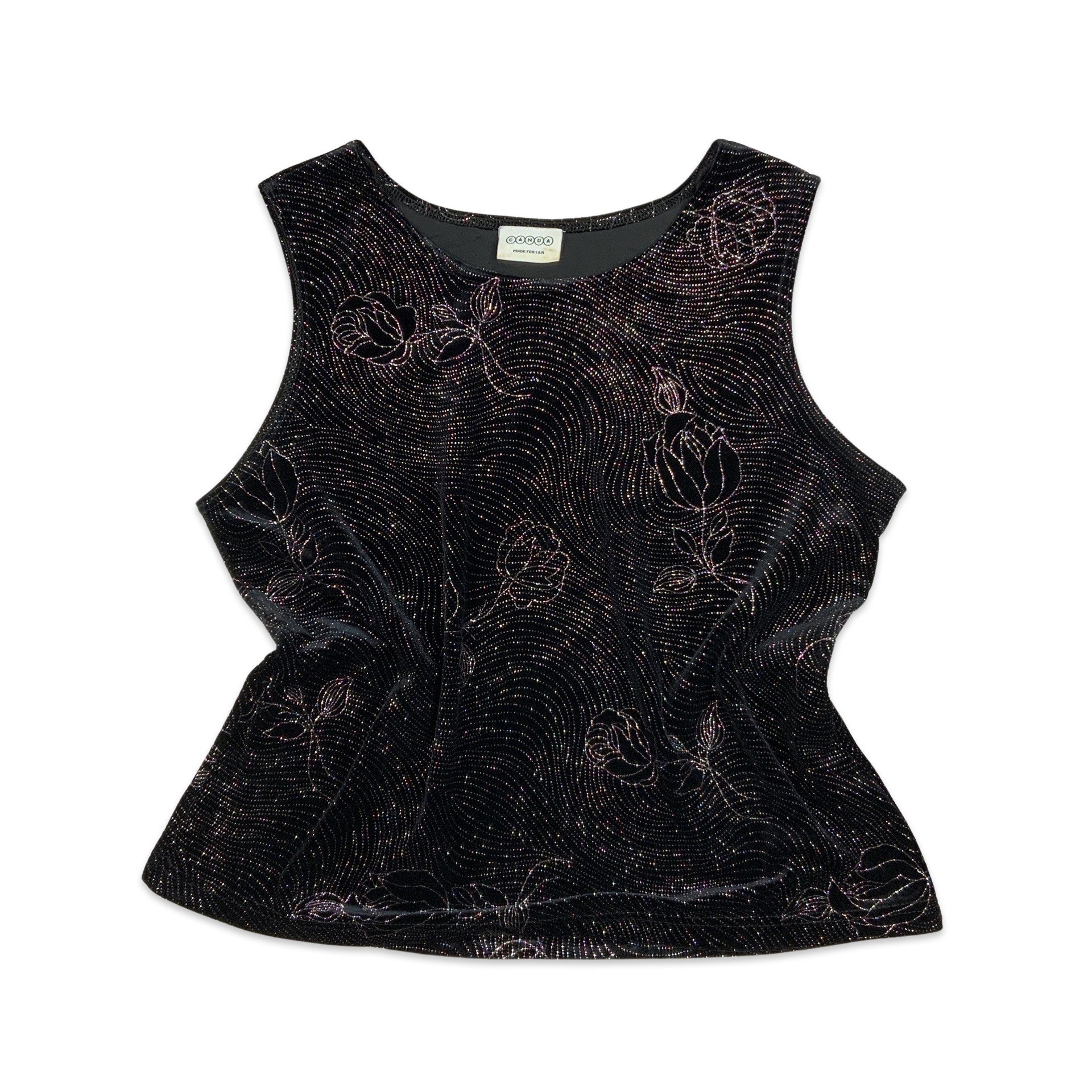 Vintage 90s Velour Vest Top Black Purple 14 16