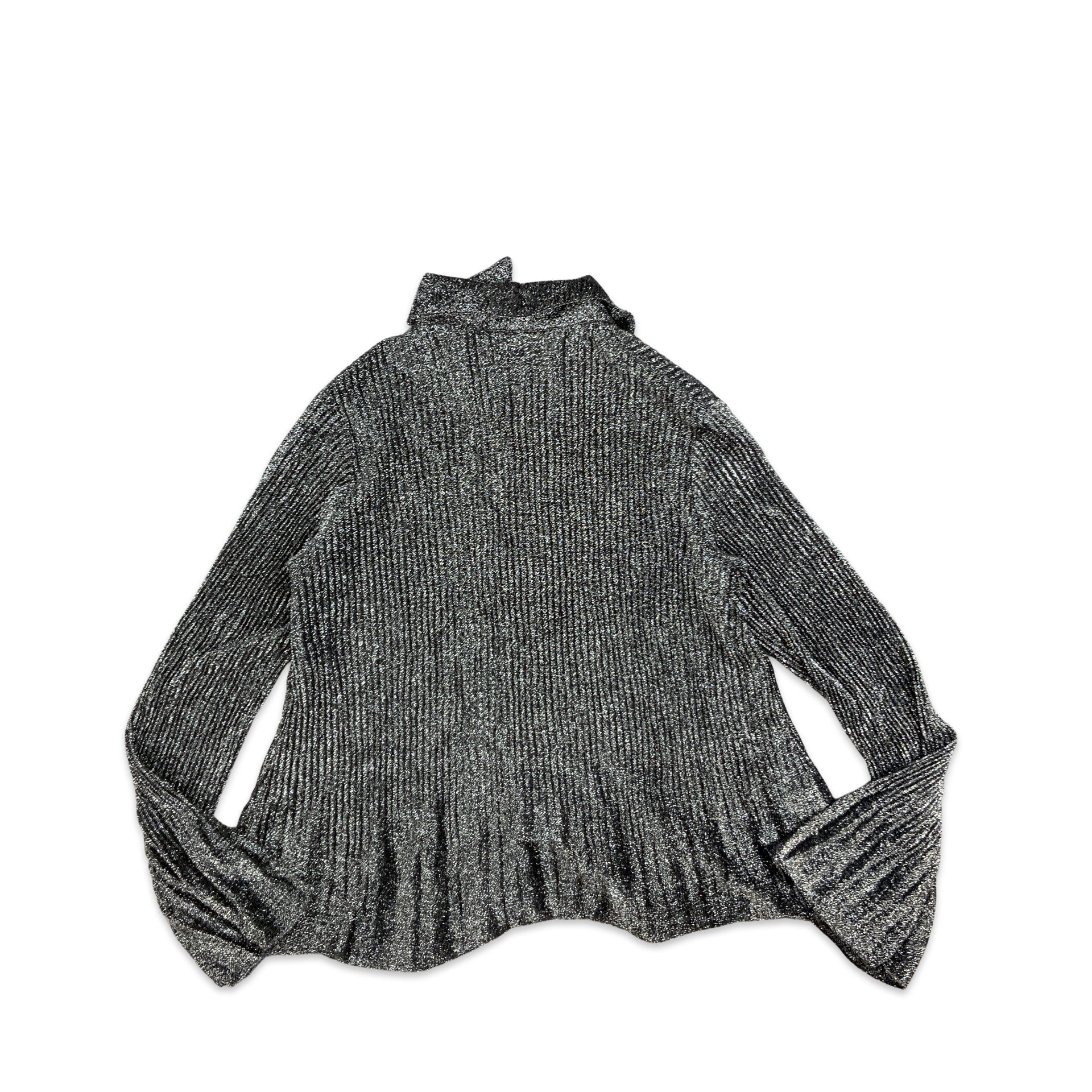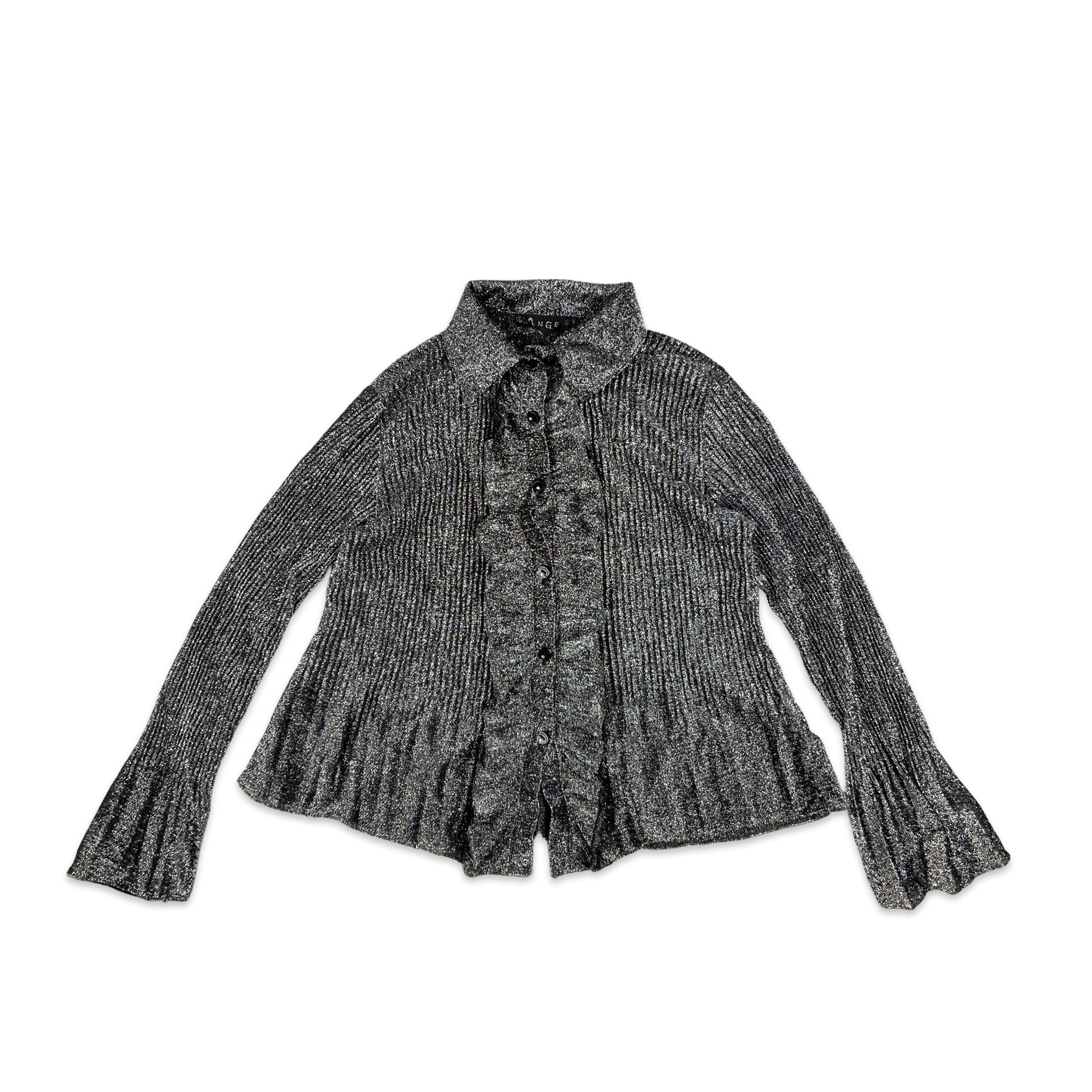 Vintage Lurex Peplum Blouse Silver Black Ruffle 8 10