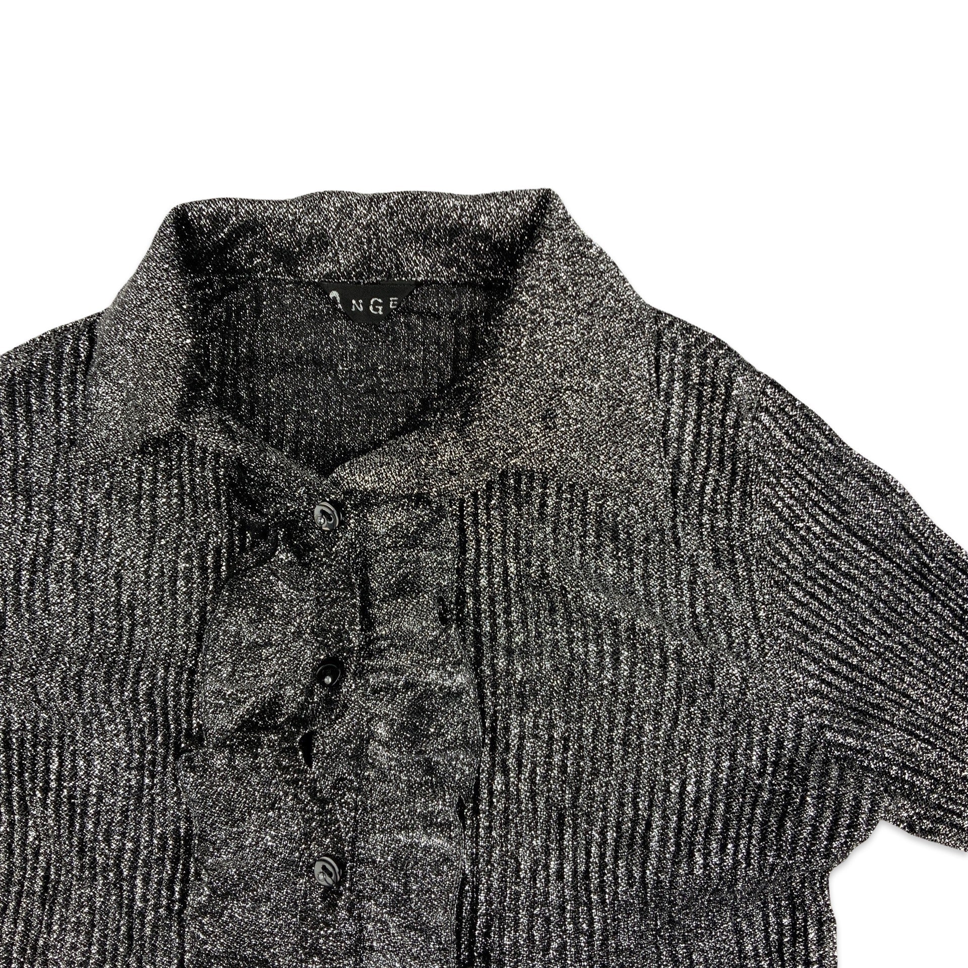 Vintage lurex button up peplum style blouse. Front and cuff ruffle detailing. Tinsel thread