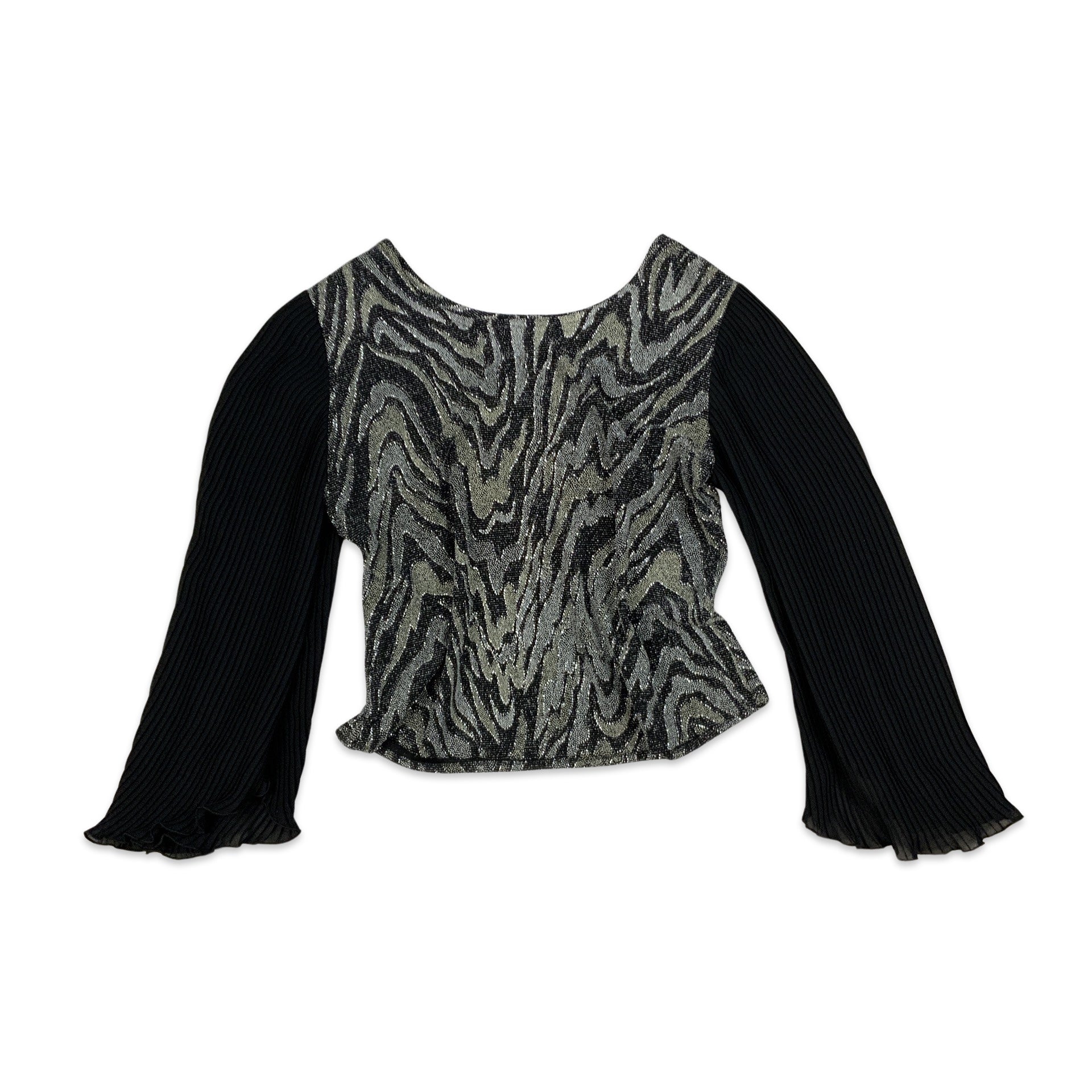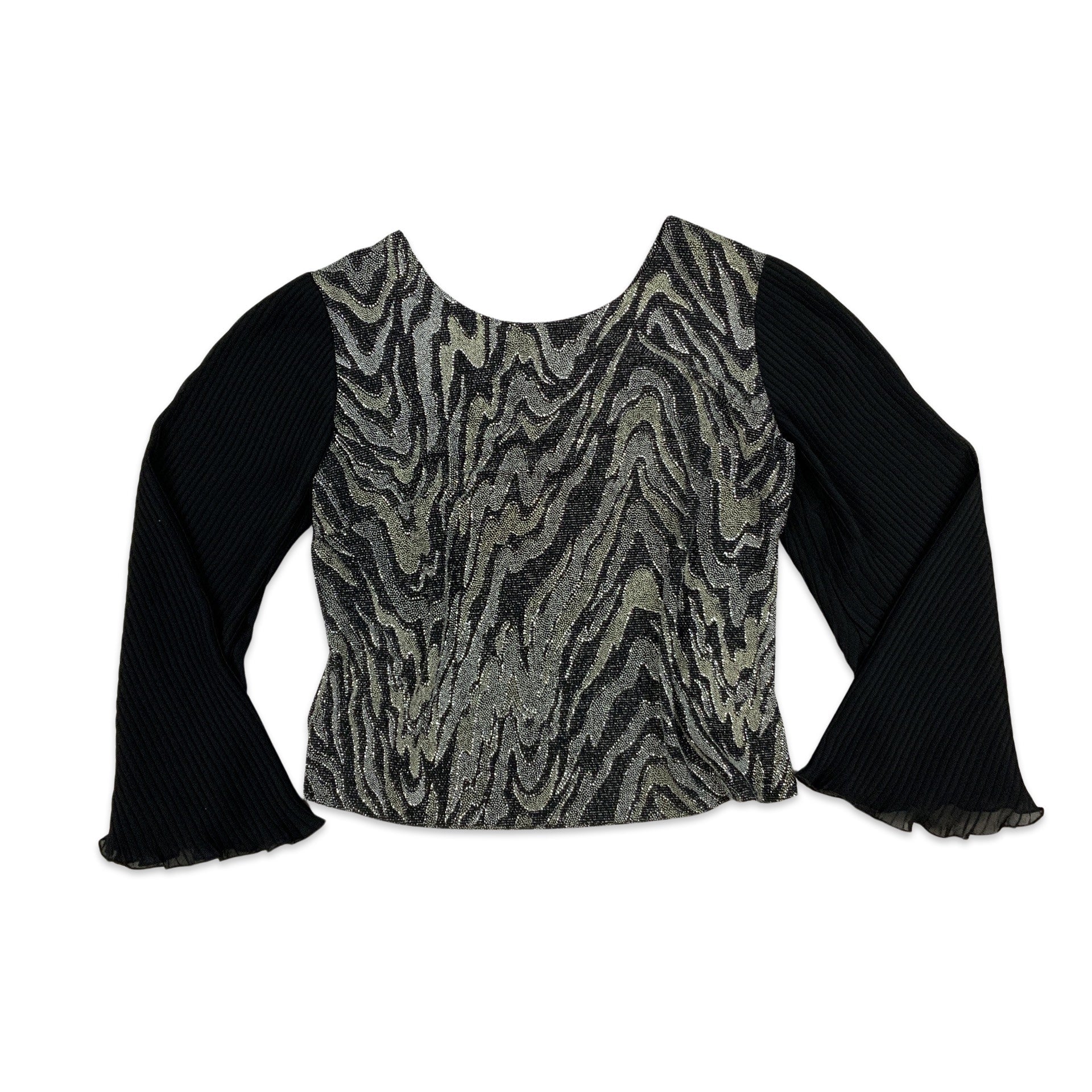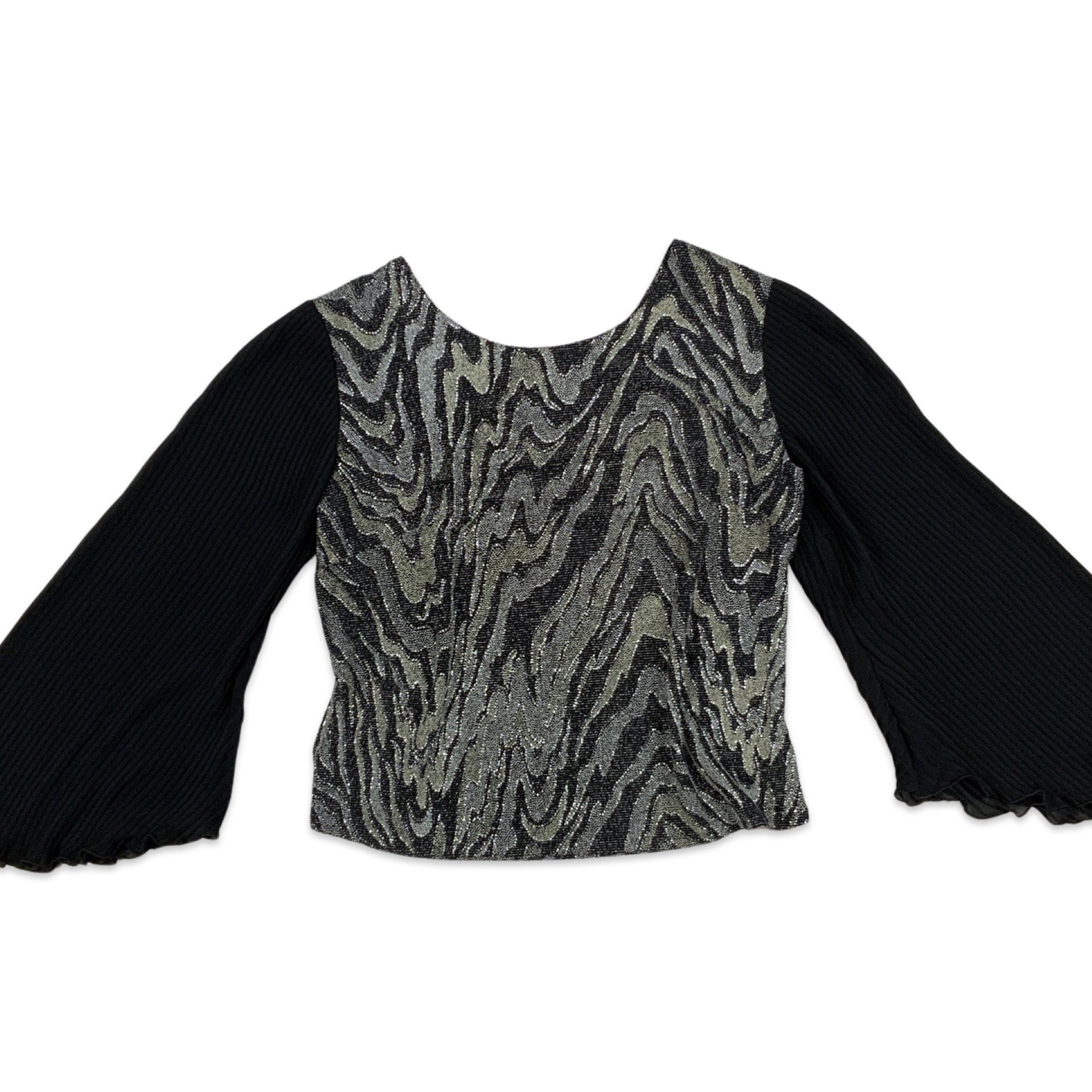 Vintage 90s Lurex Blouse Plisse Sleeves Black Silver 10 12