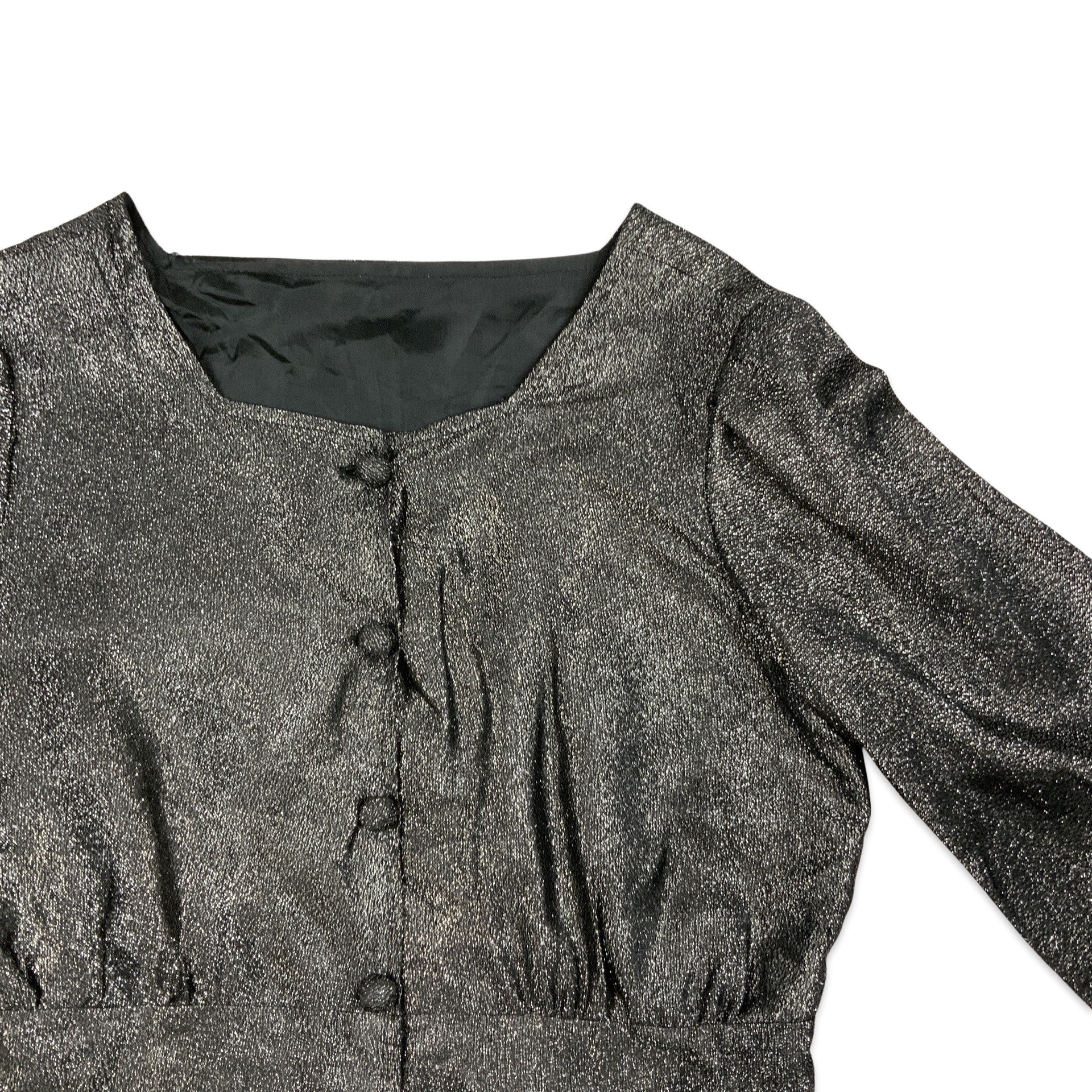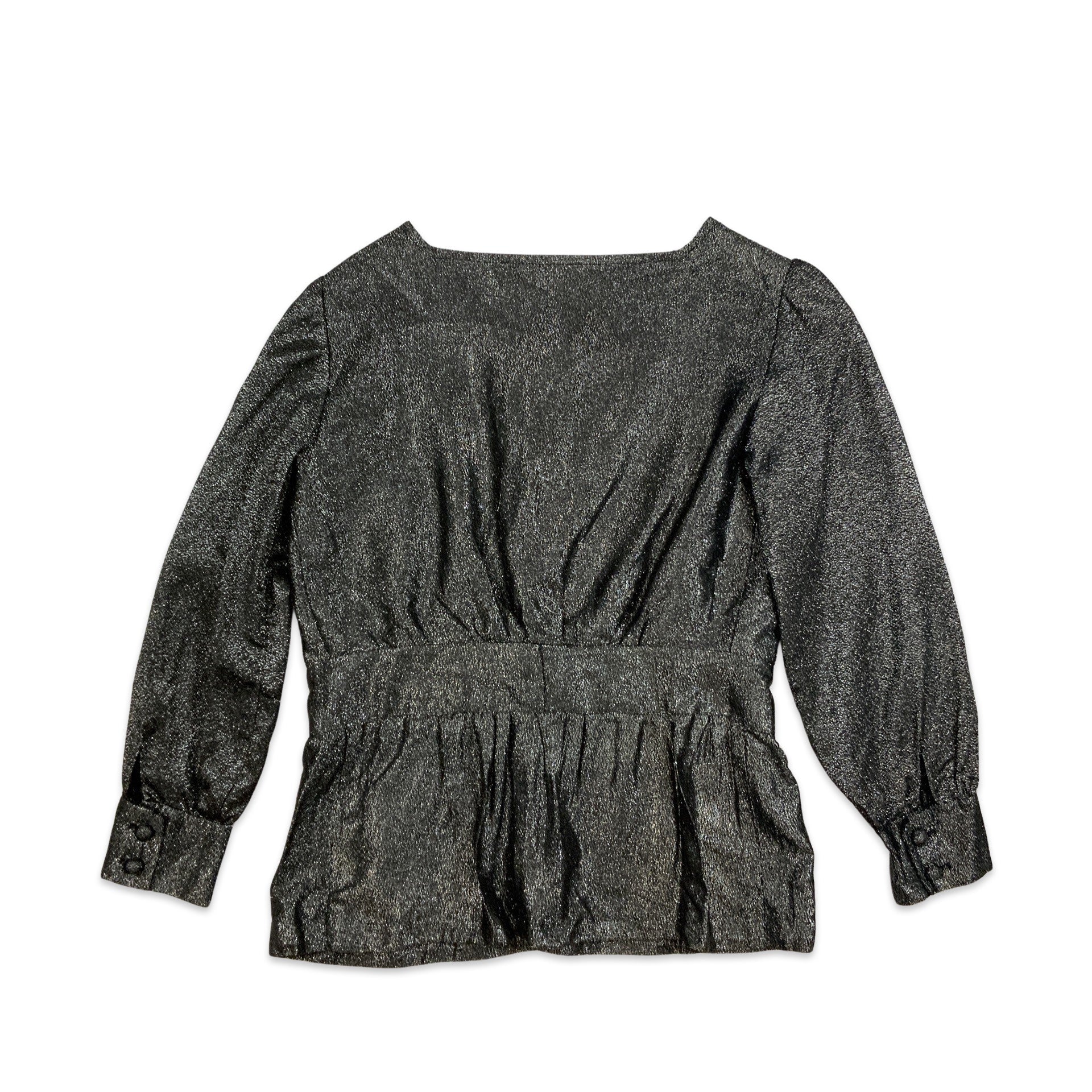 Vintage 80s Lurex Blouse Silver Black 8 10