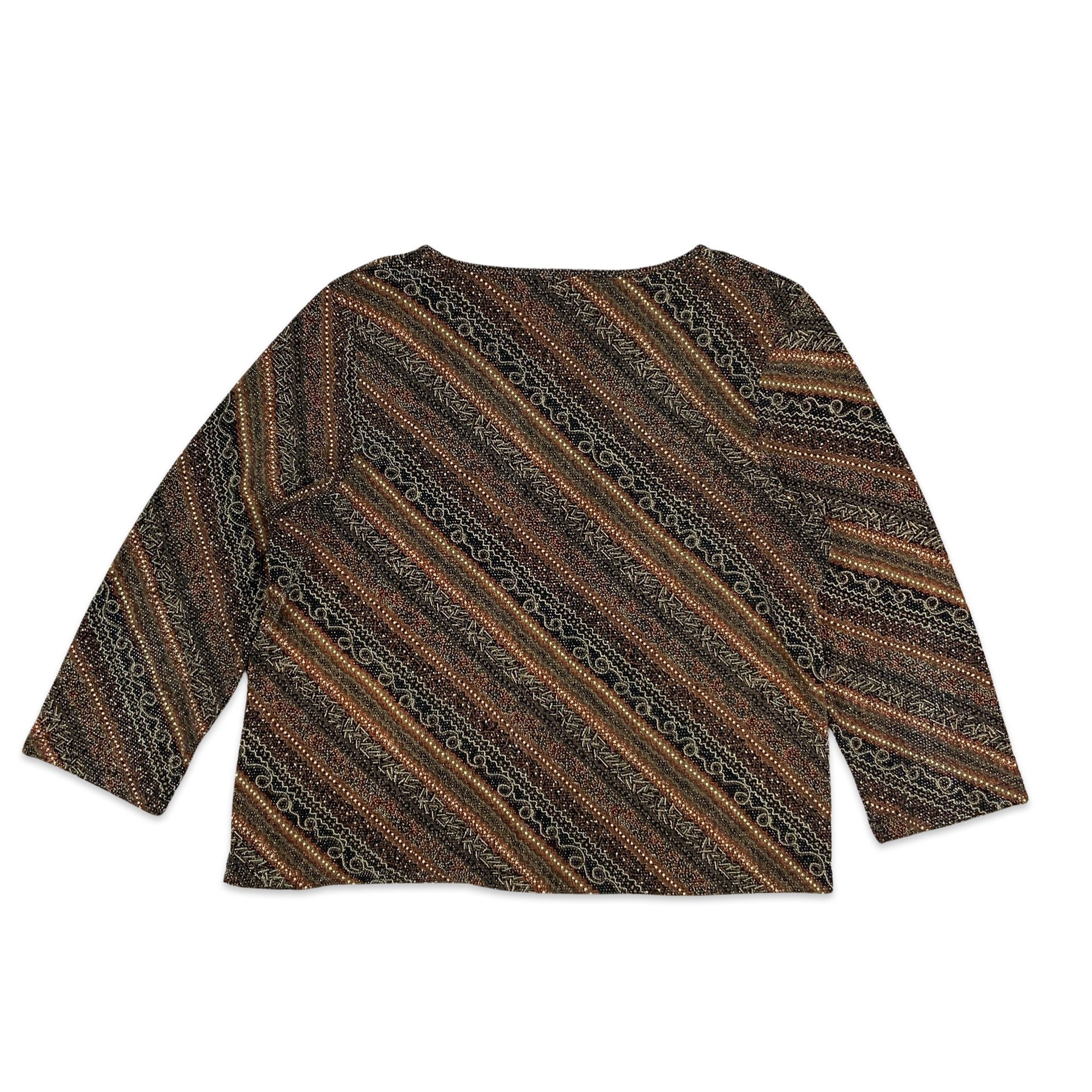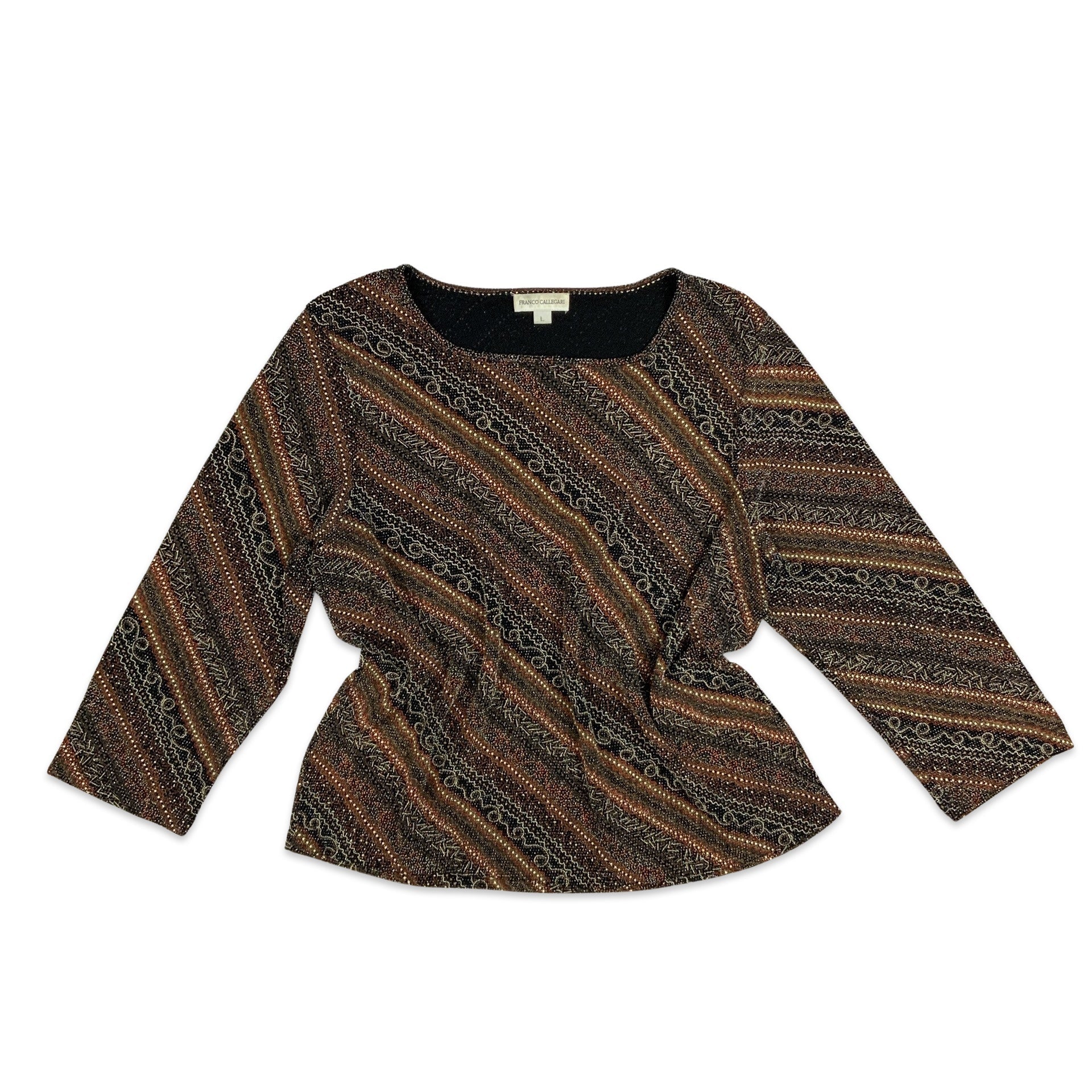 Vintage 90s style patterned lurex long sleeve blouse. Swirl abstract pattern.