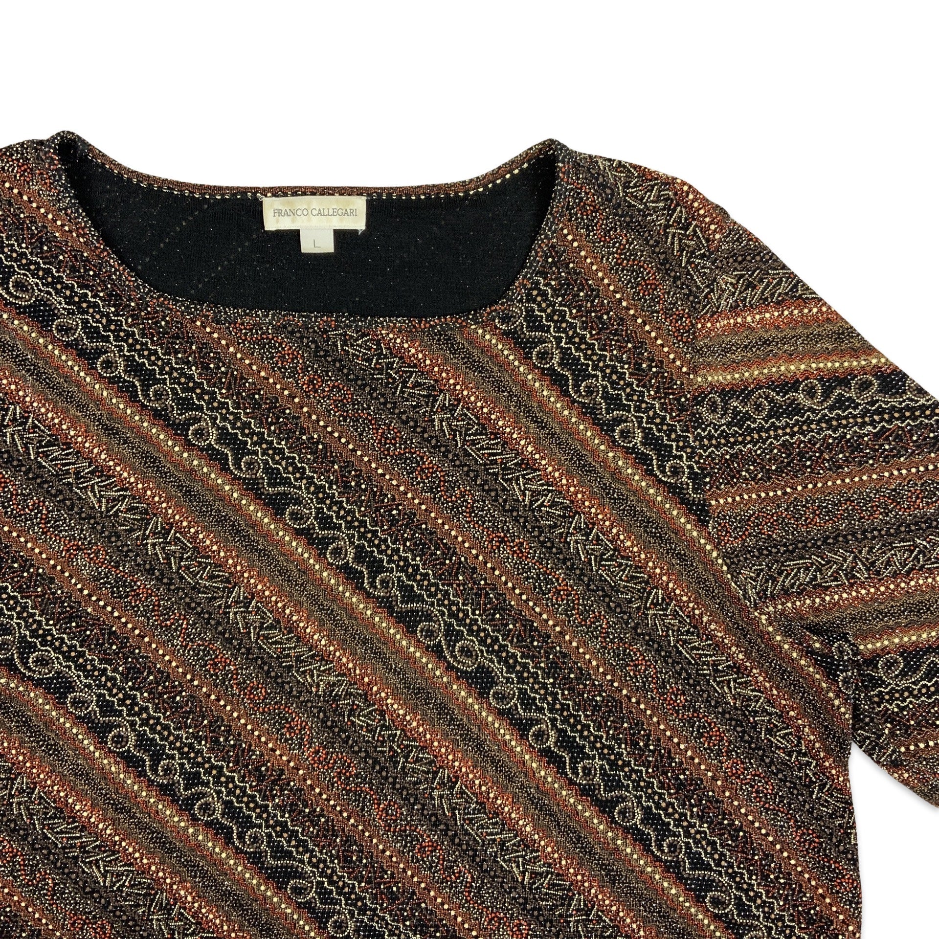 Vintage 90s Lurex Patterned Blouse Black Orange 14 16