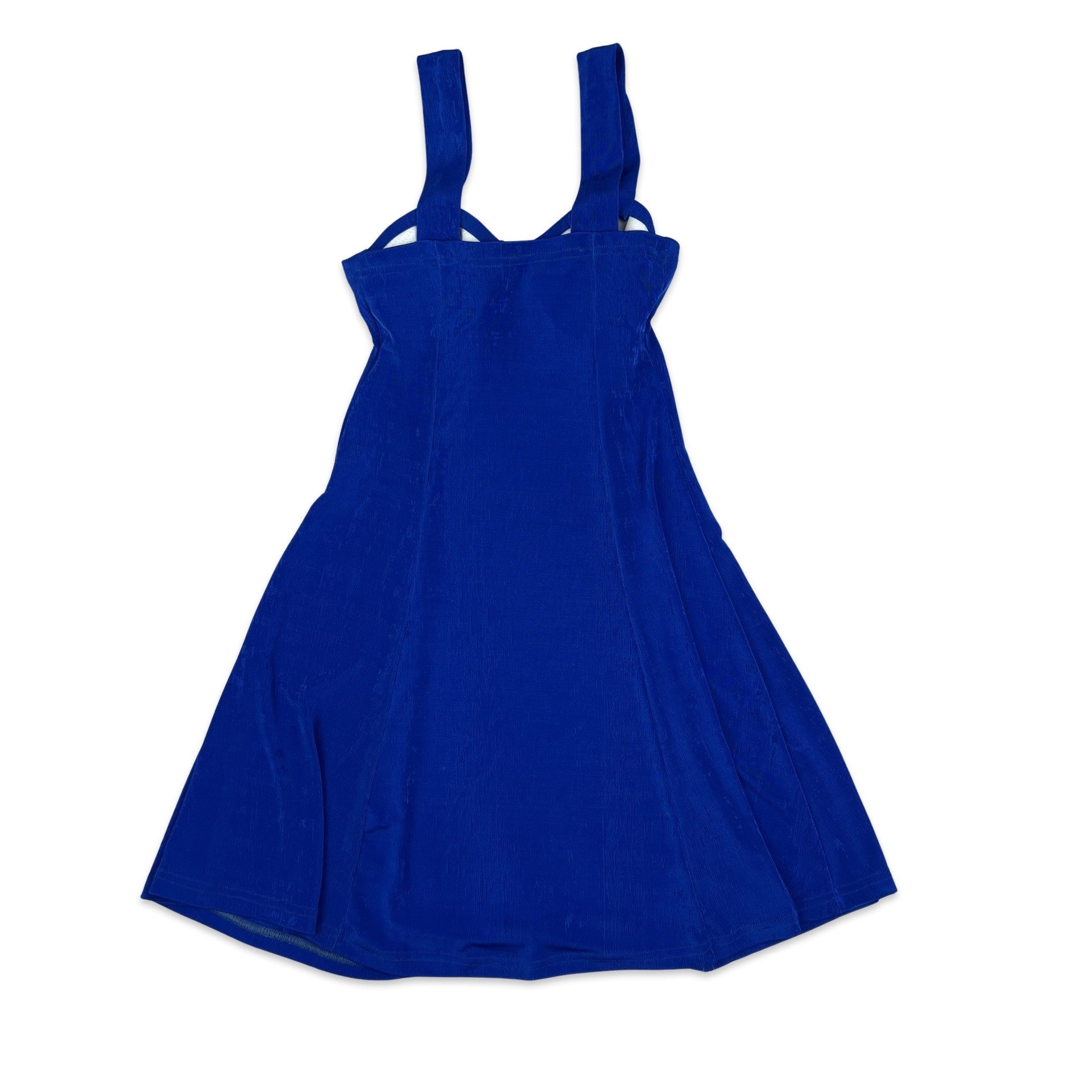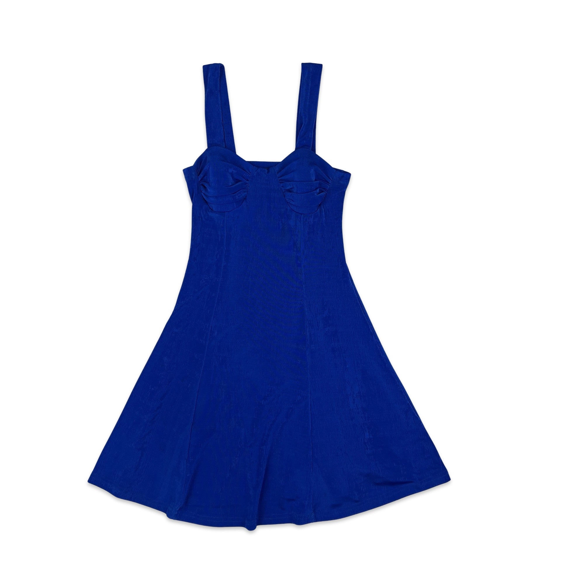 Vintage 90s style blue skater dress with ruched detail. built in bust cups.